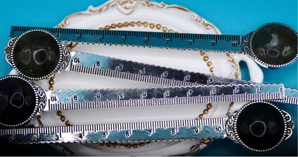 Handige kleine meetlat met 10 cm weergave. De meetlat is van metaal met een ingelegde steen, waaronder oceaan jasper en amethist. Wordt willekeurig uitgekozen.