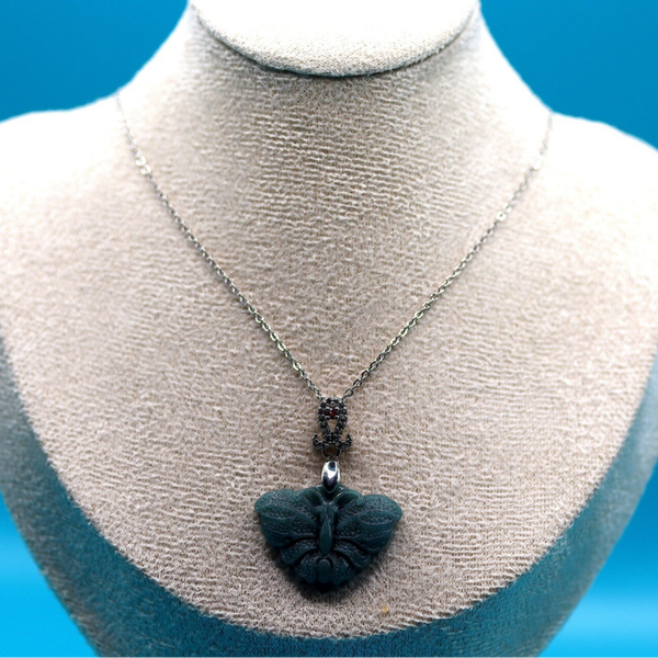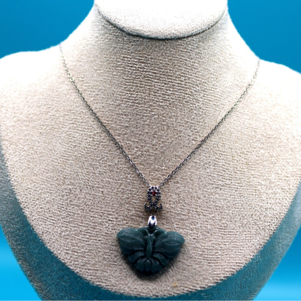 Ketting met een hanger van jade in de vorm van een vlinder. Grootte is 1.8 bij 2.5 cm.