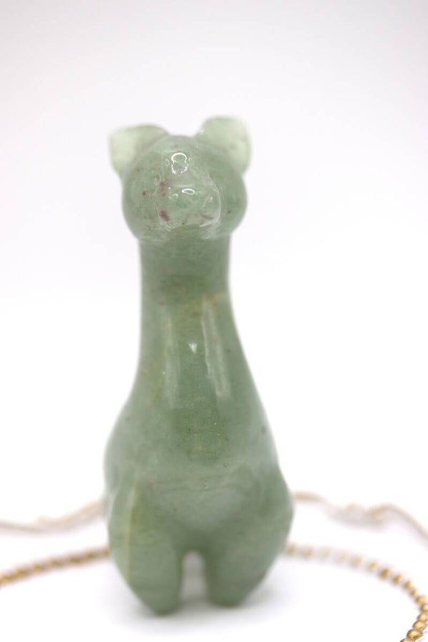 Beeldje van een alpaca gemaakt van groene aventurijn. De hoogte van het beeldje is circa 7 cm.