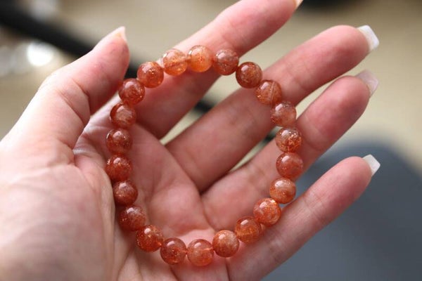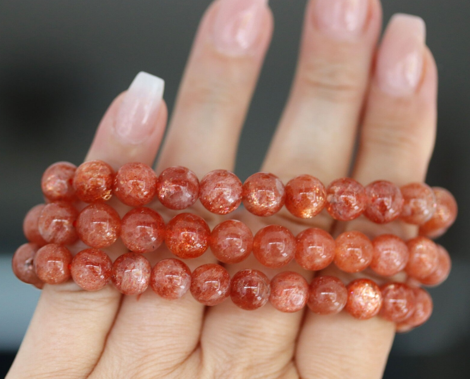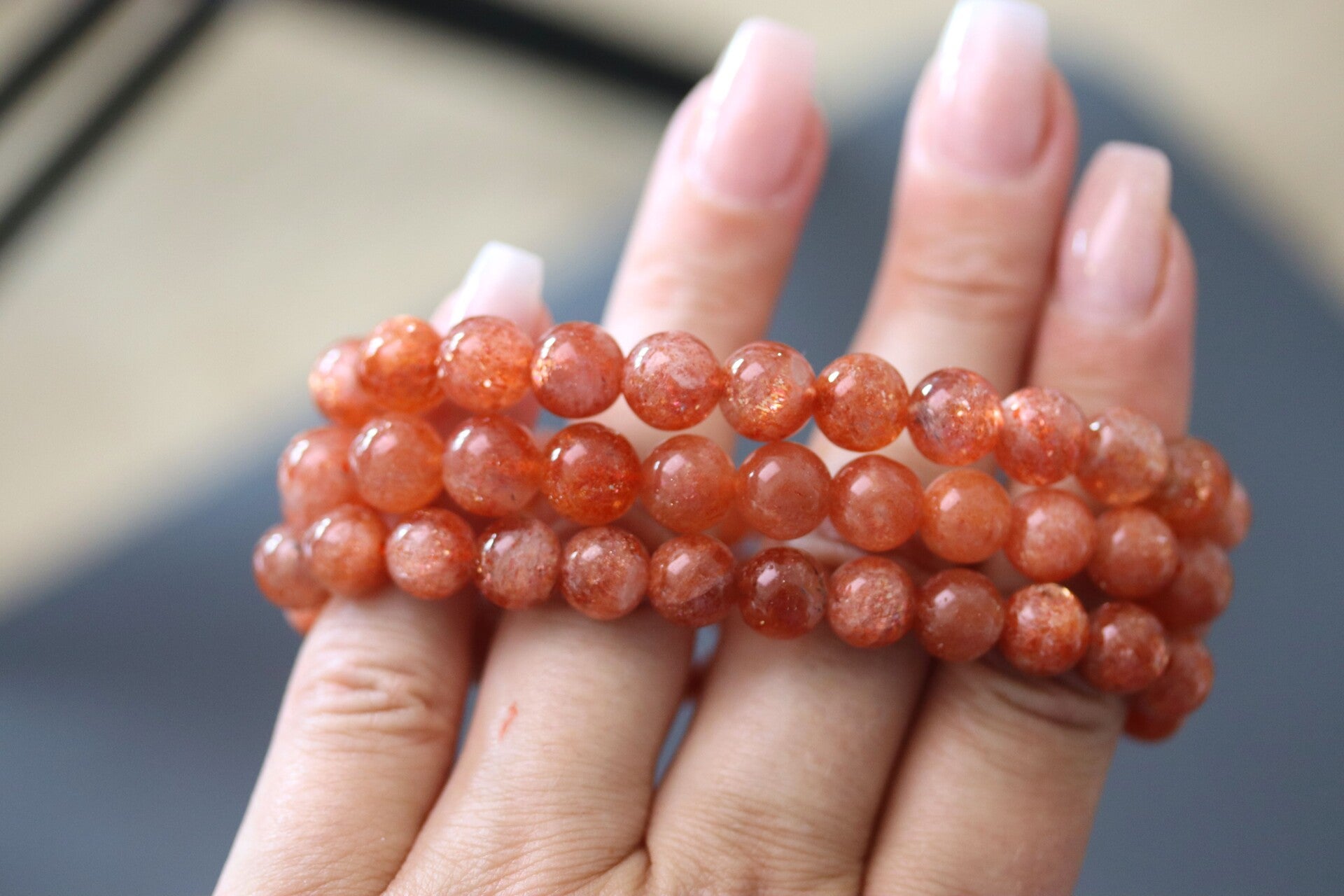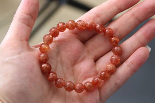 Super mooie armband van gouden zonnesteen. Mooie donkere kwaliteit. Heeft prachtige schitteringen wanneer licht op de kralen valt. De grootte van de kralen zijn 8 mm.