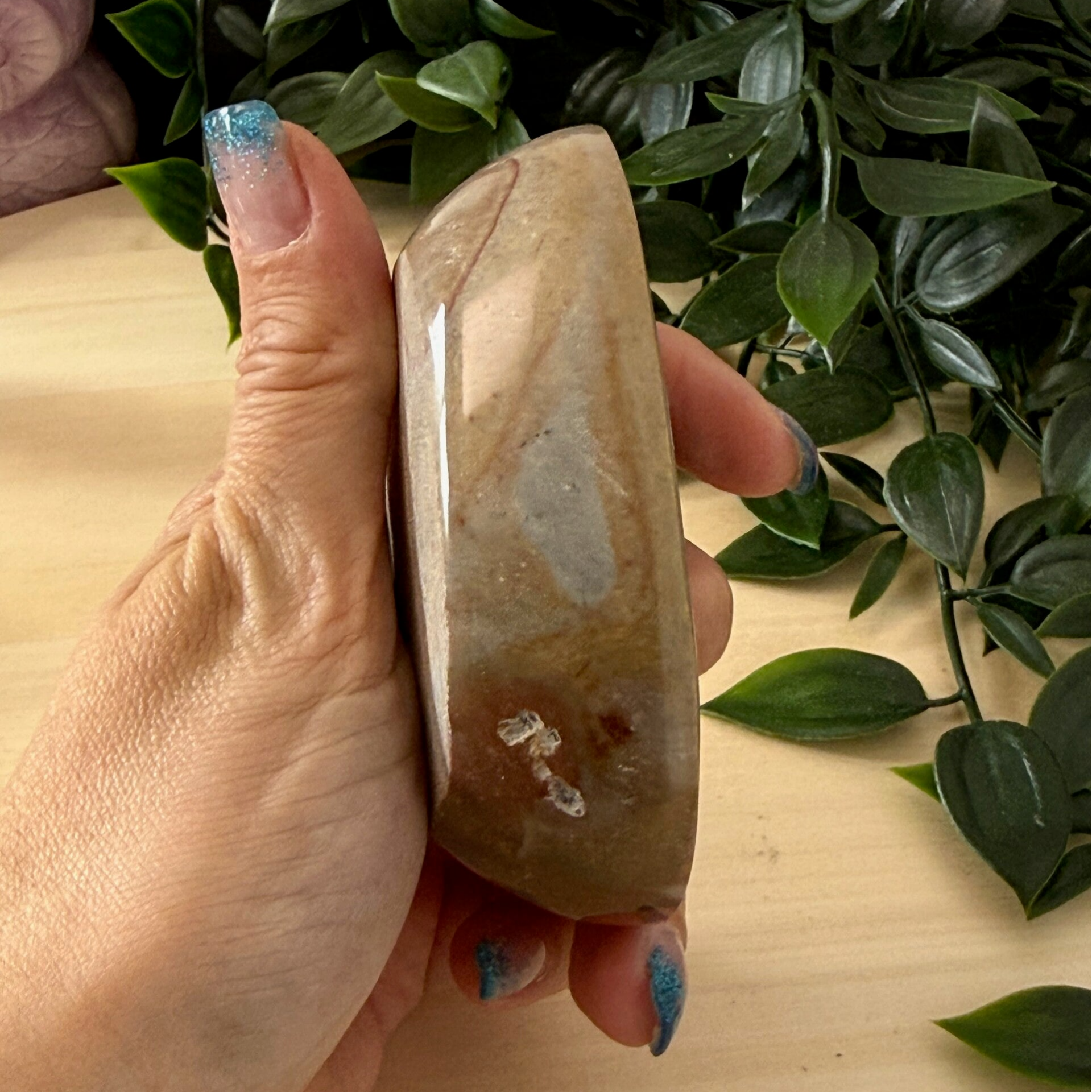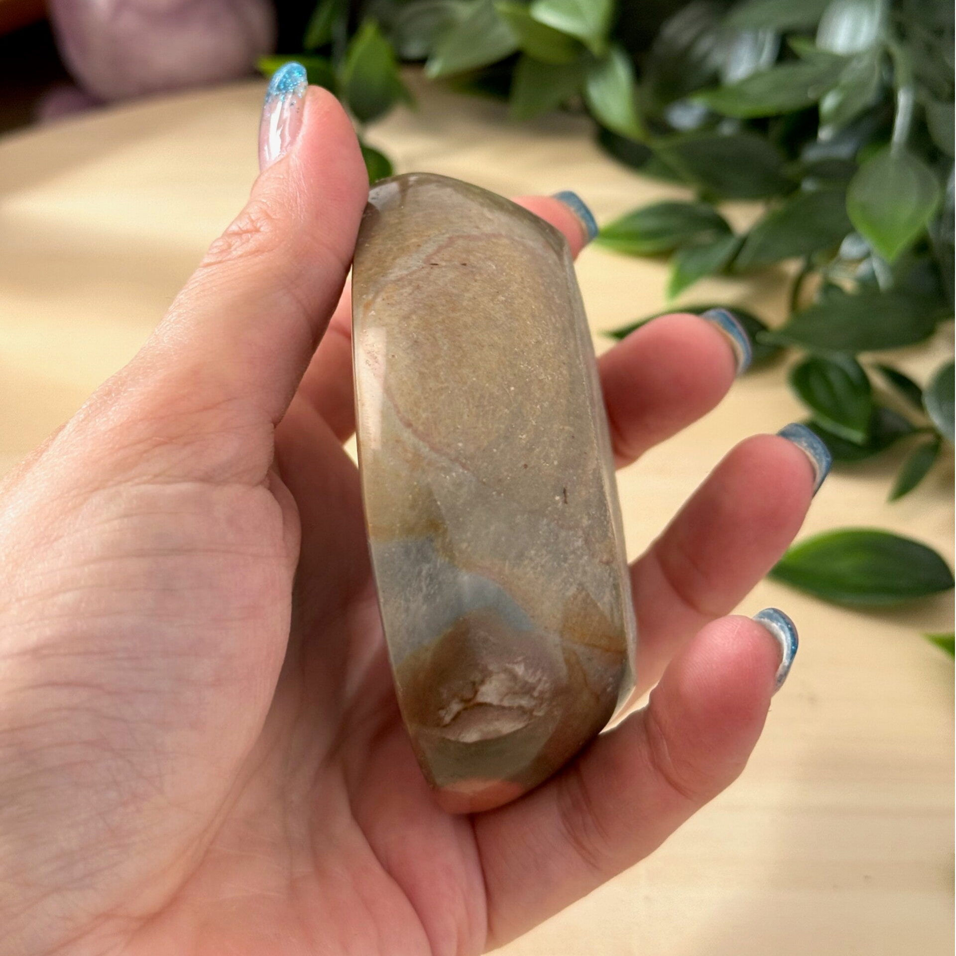 Spiritueel is de polychroom Jaspis een sterk aardende steen die je in balans kan brengen en tot jezelf kan laten komen. Het is een evenwichtige steen.