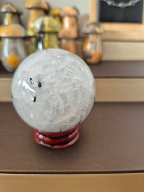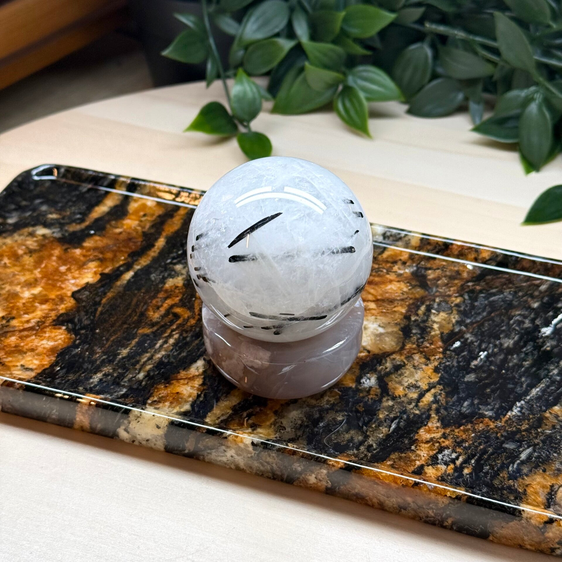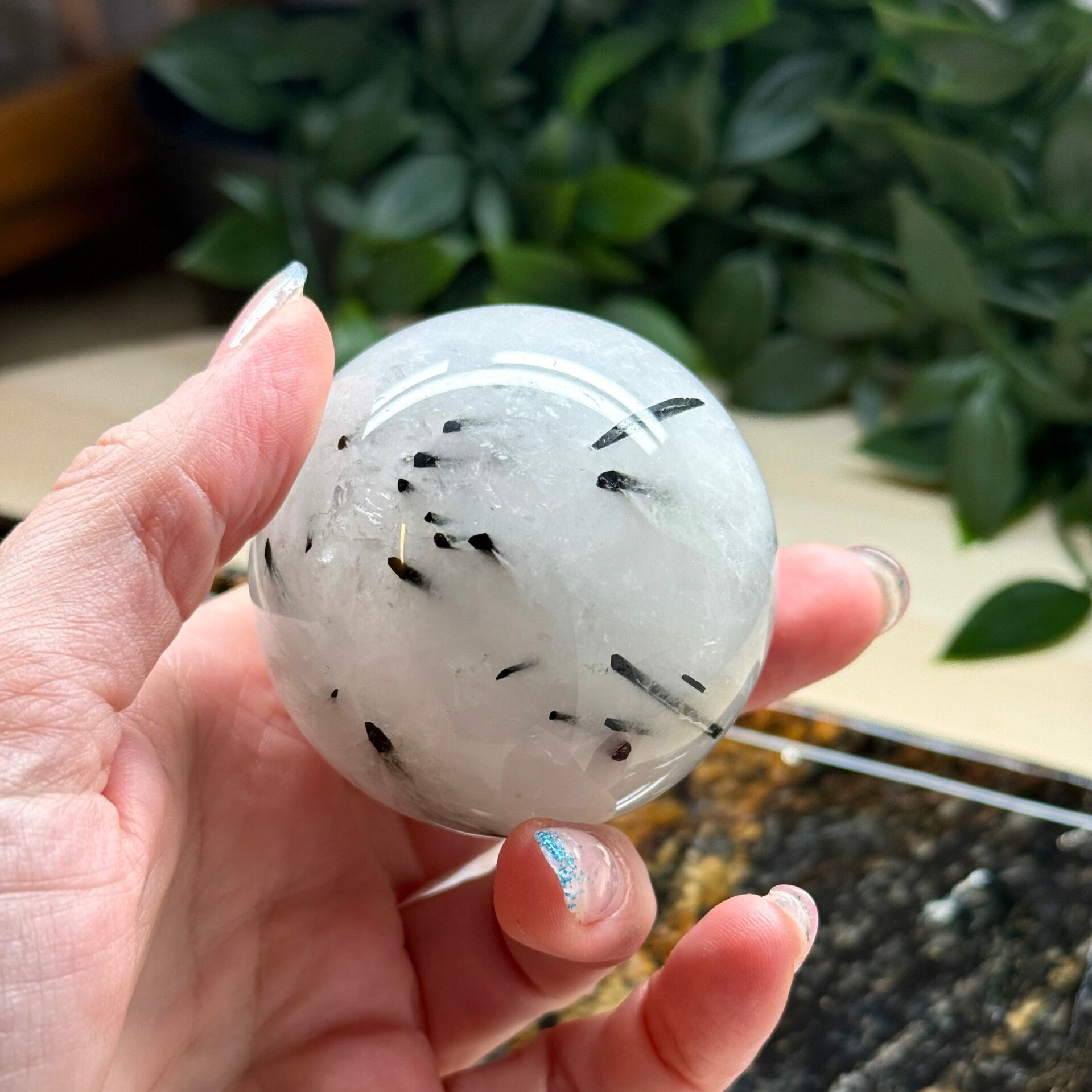Toermalijnkwarts is helder kwarts met toermalijn kristallen (zwarte schorl) erdoorheen. Dit wordt met name gevonden in Brazilië.