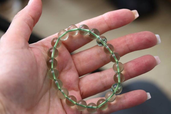Een armband van groene fluoriet kralen met grootte van 10 mm. De kralen zijn van goede kwaliteit.