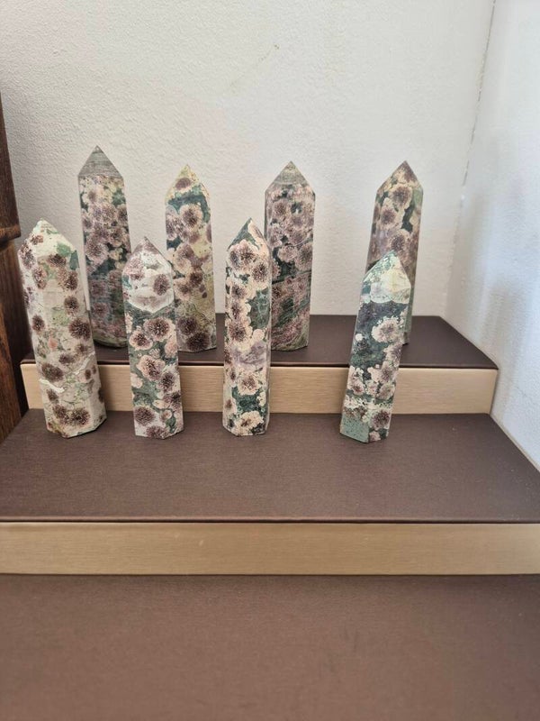 Bloem rhyoliet / groene bloem jaspis / sakura bloem jaspis toren