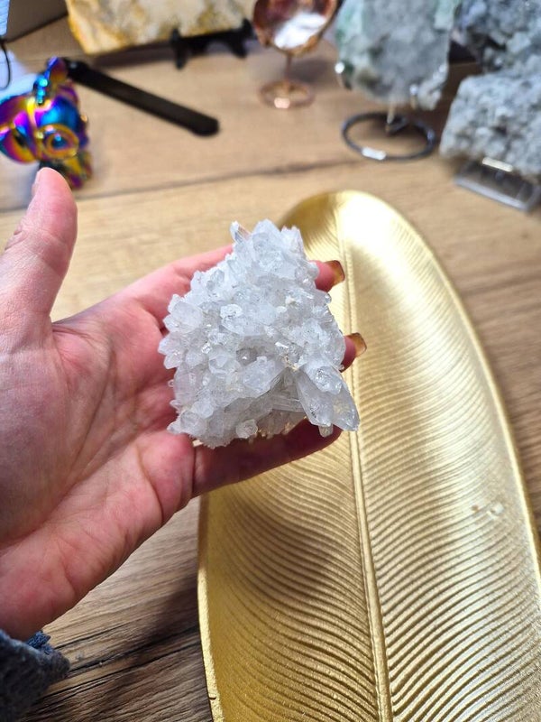 Cluster van helder kwarts / needle quartz van 250 gram. De houder is niet inbegrepen.