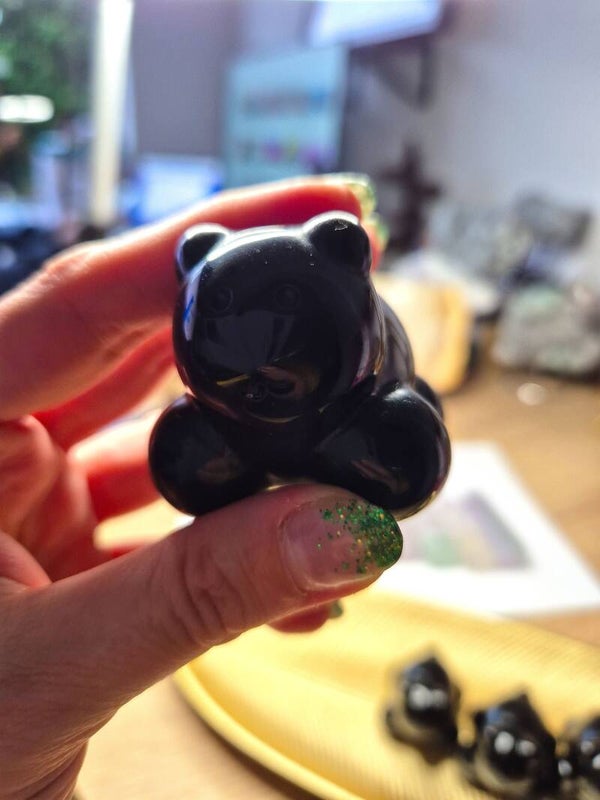Te cute dit beertje van zwart obsidiaan. Het bbertje is 6 cm lang en 4 cm hoog en weegt 140 gram. Het is een handgemaakte carving en is een leuk cadeau voor bijvoorbeeld een kind of als deco stukje voor jezelf.