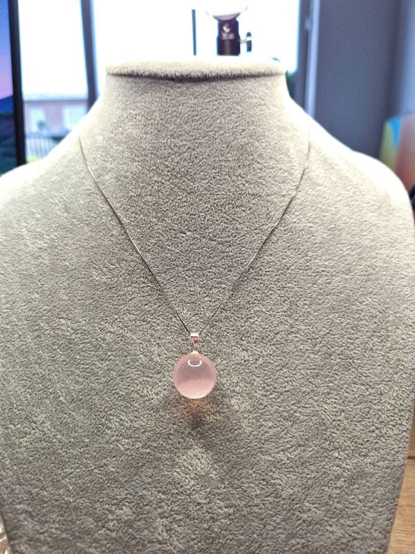 Zilveren hanger met ster rozenkwarts van 18 mm in bol vorm. Met zilveren S925 oogje of goudkleurig (geen zilver!).