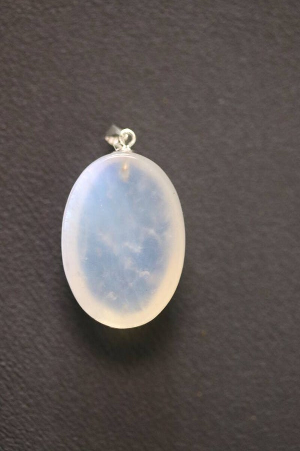 De gloed ontstaat wanneer er een lichtbron op de hanger valt en de hanger beweegt (net als bij labradoriet). Zie het filmpje van de hanger onderaan deze pagina. Een prachtexemplaar!