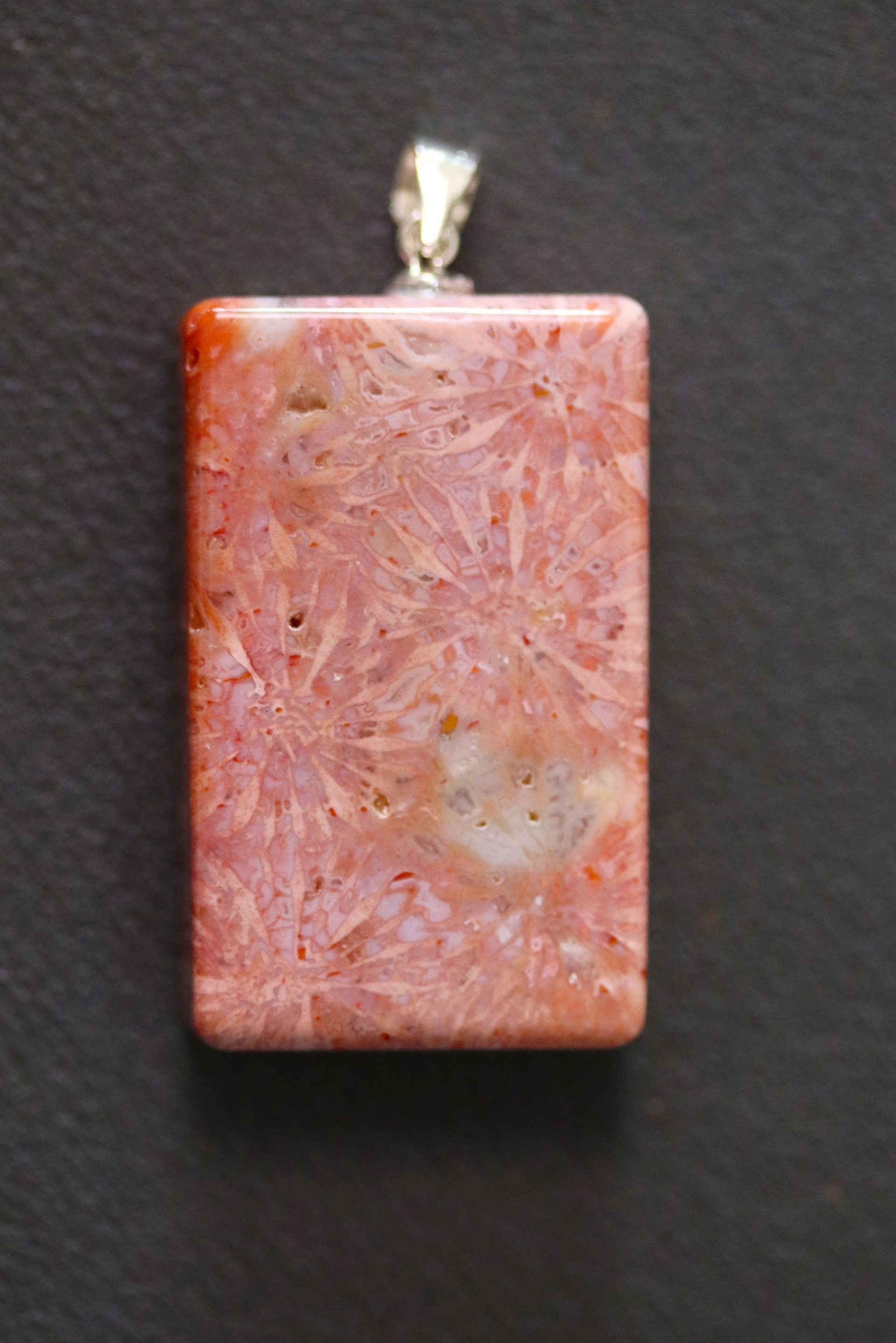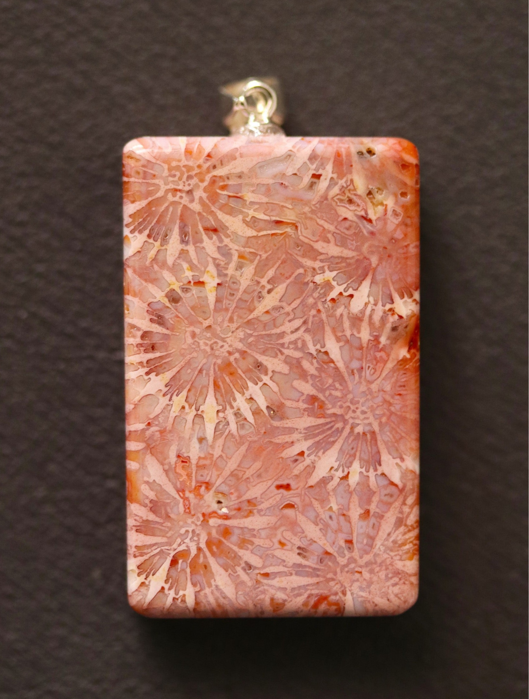 Prachtige bloemvorming heeft deze hanger van fossiel koraal.