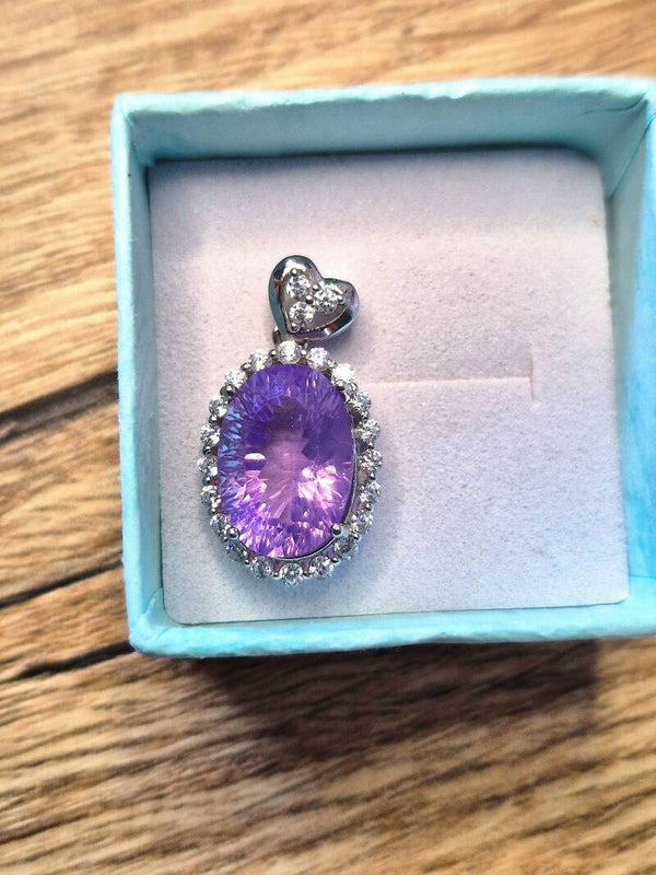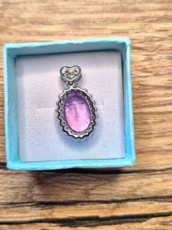 Prachtige hanger met een steen van lavendel amethist. De steen in ingelegd in zilver S925.
