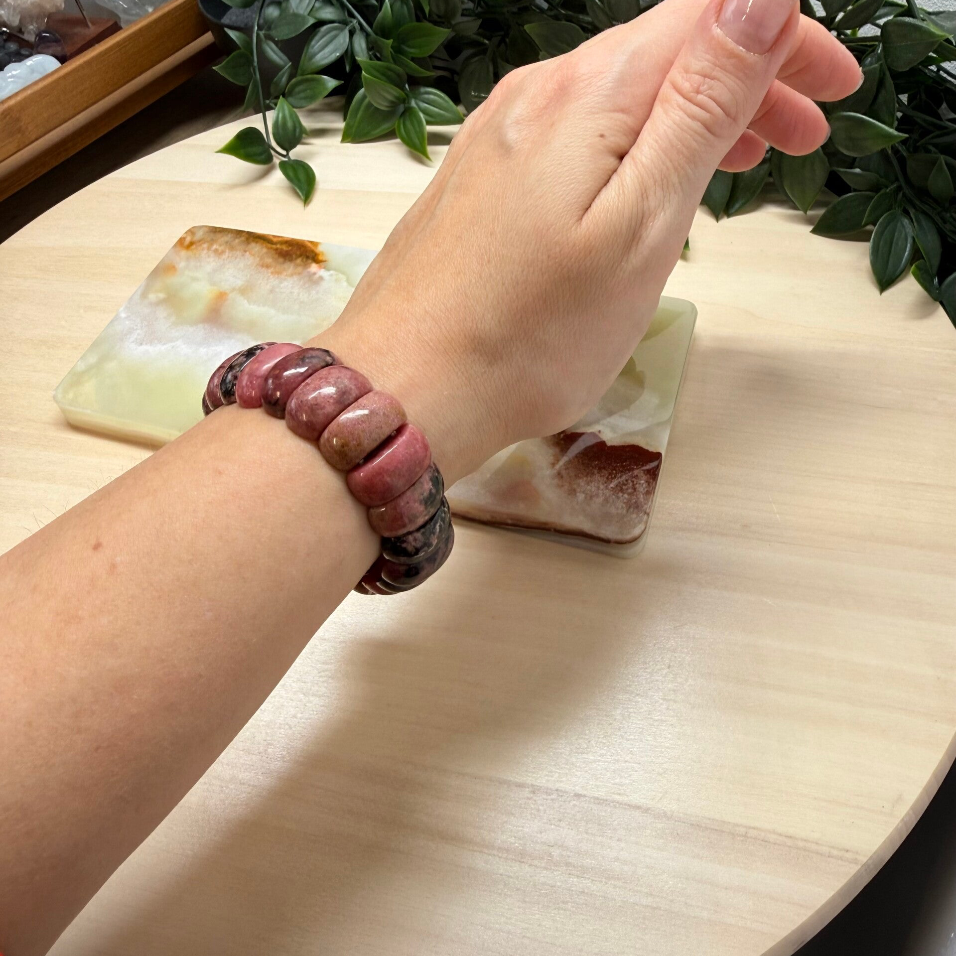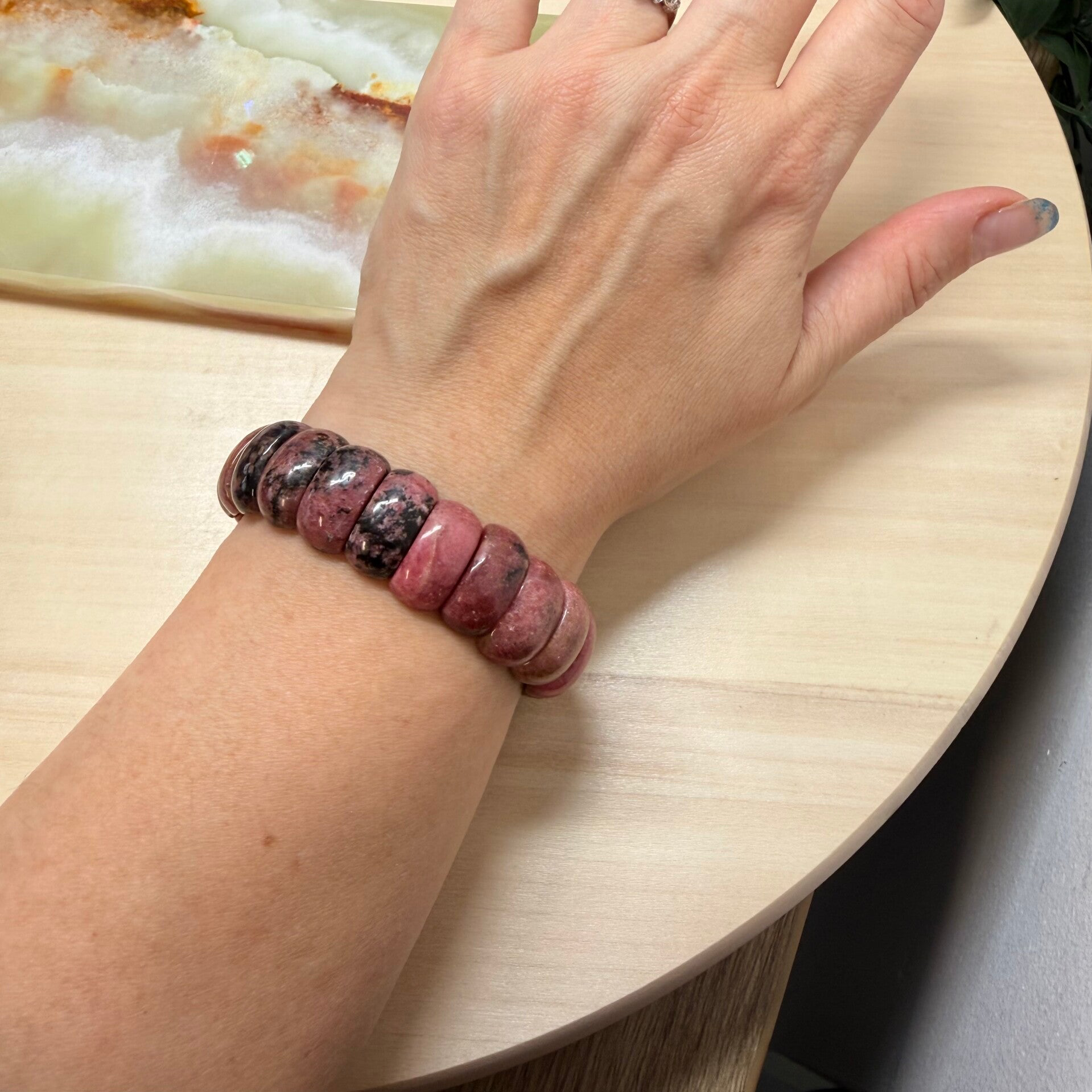 Rhodoniet is een prachtige roze tot roodachtige edelsteen, vaak met zwarte aders of vlekken die het een uniek uiterlijk geven. Het is een mangaanhoudend mineraal dat voornamelijk wordt gevonden in landen zoals Rusland, Zweden, Duitsland, Mexico en Brazilië. De naam "rhodoniet" komt van het Griekse woord rhodon, wat "roos" betekent, verwijzend naar de roze kleur van de steen.