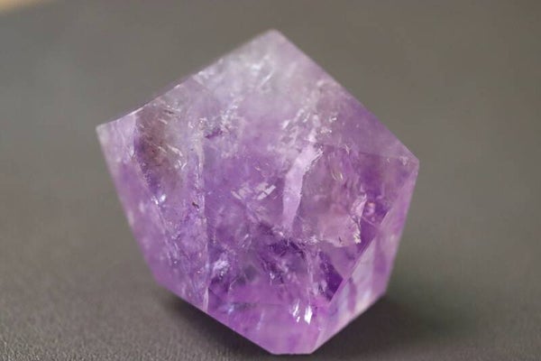 Free-form van hoogwaardige amethist met gewicht van 86 gram en 5.3 x 5 x 2. cm. Er zitten regenboogjes in deze sculptuur. De vorm lijkt op een diamant.