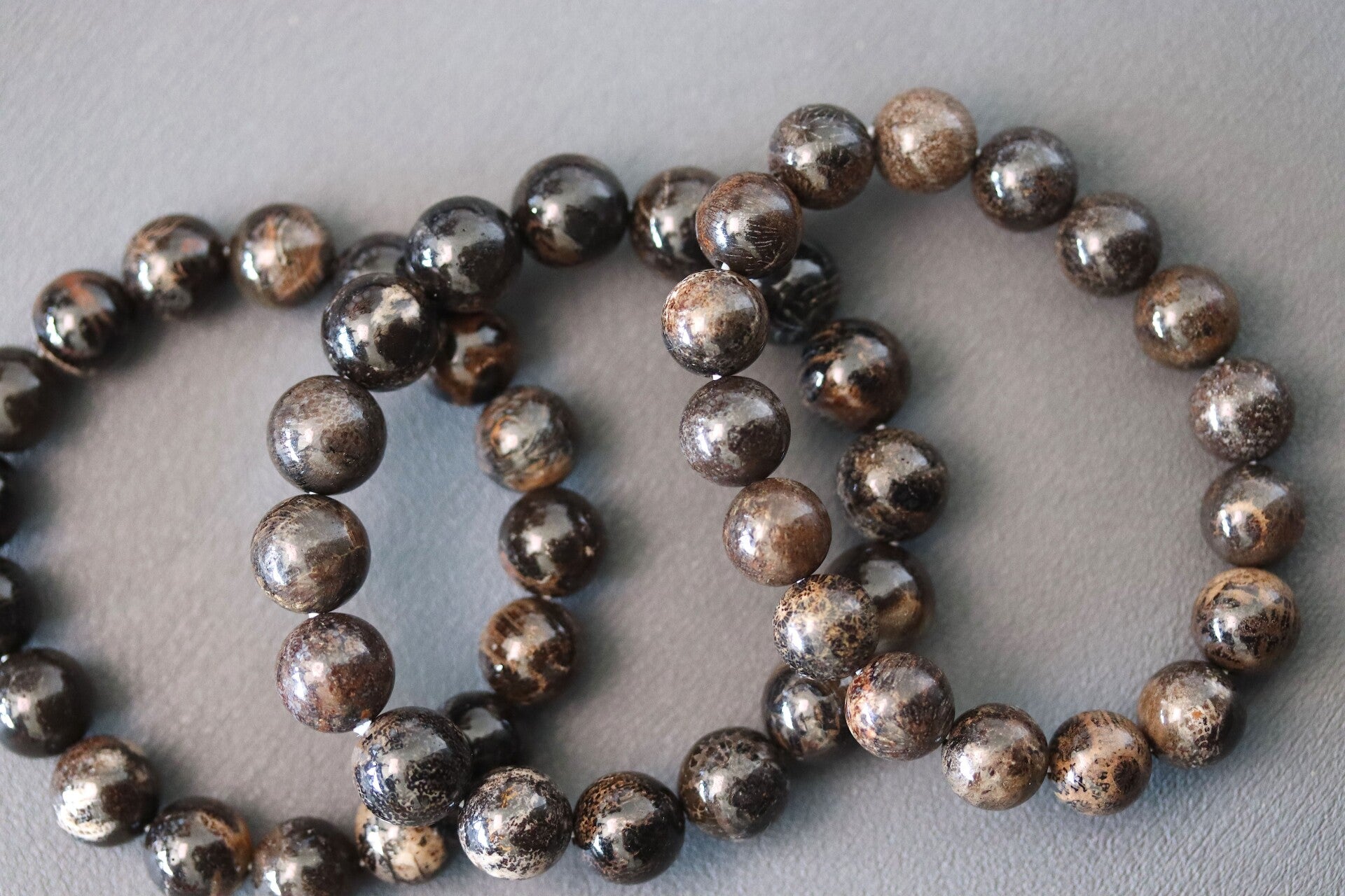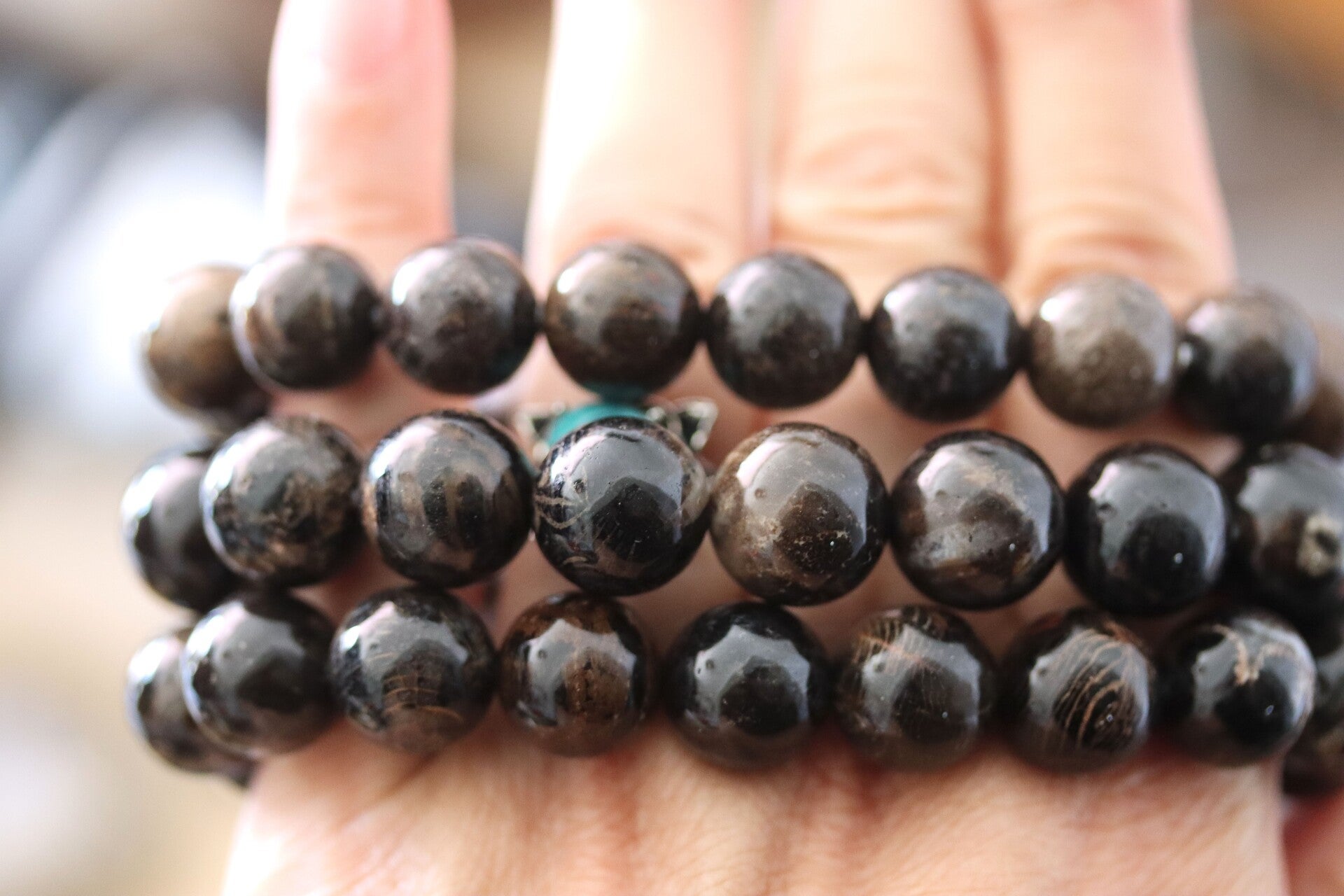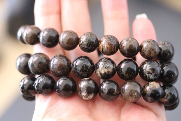 Armband van zwart fossiel koraal met afmeting van 12 mm. Bij aankoop wordt één van de armbanden die te zien zijn op de foto's geleverd.