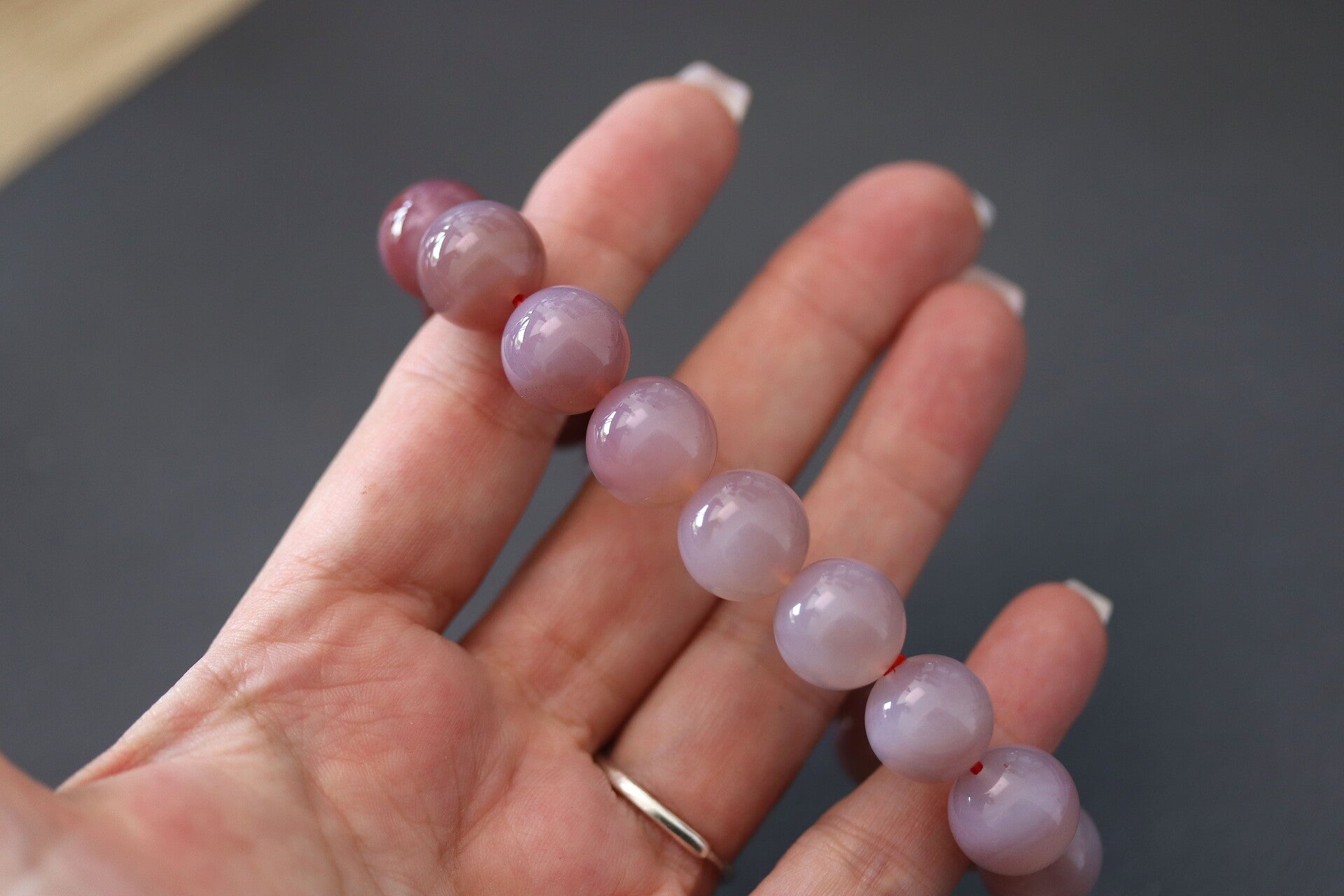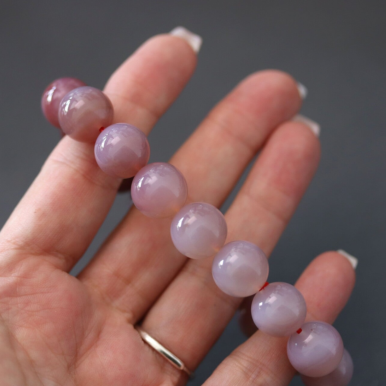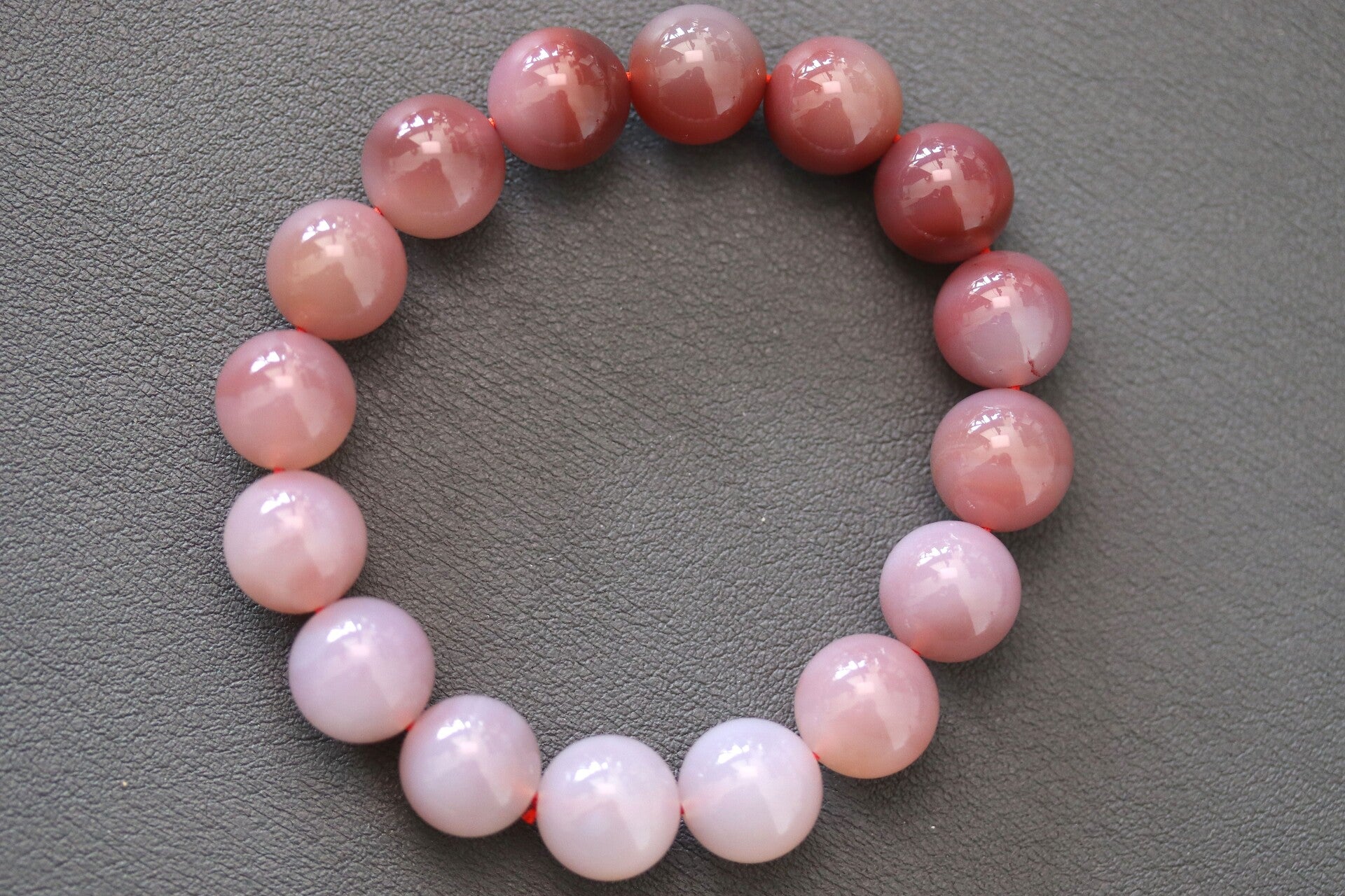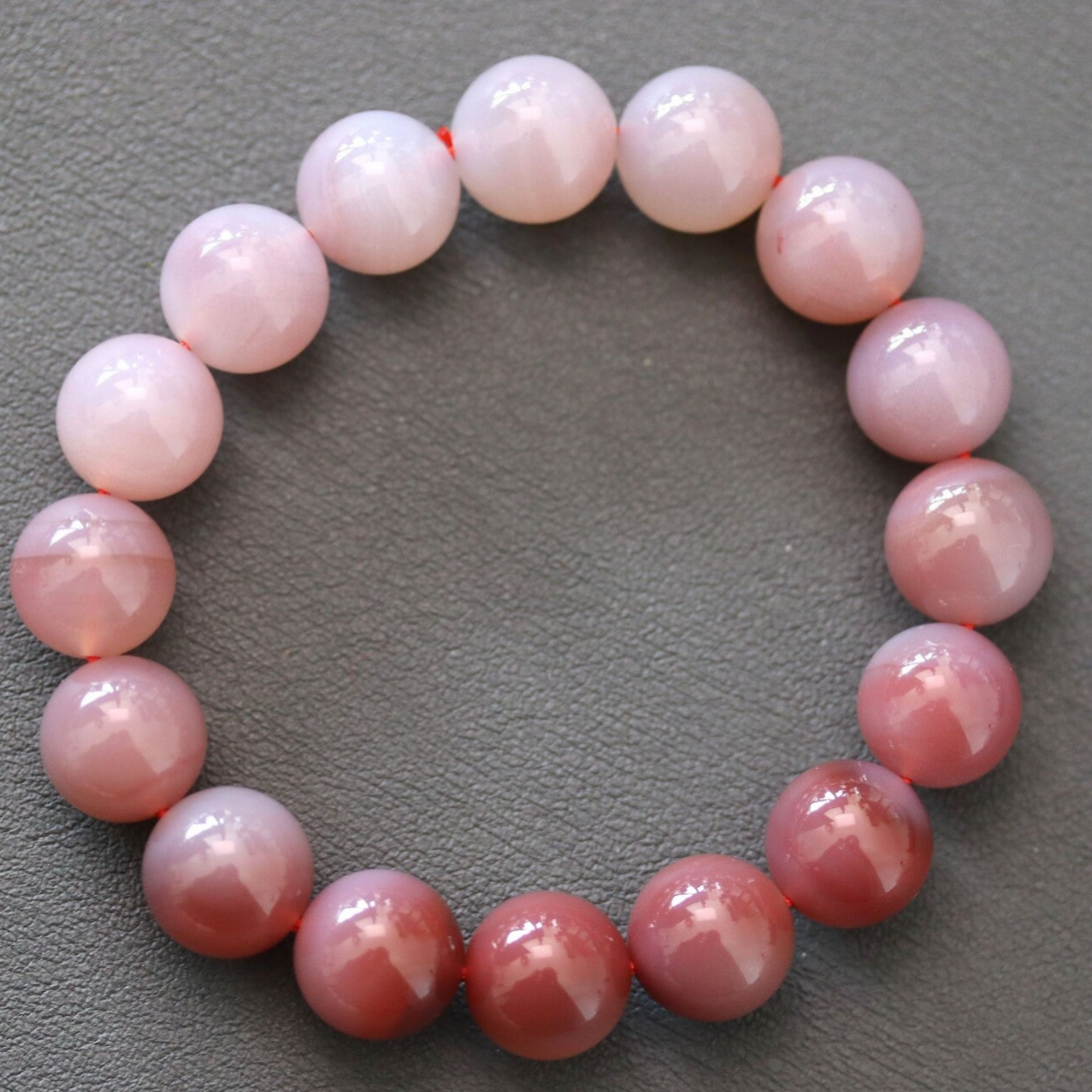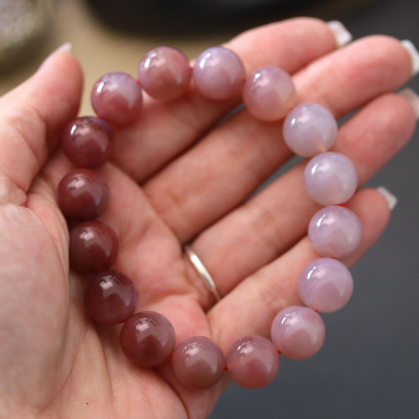 Armband met kralen van Yanyuan agaat van 13+ mm in afmeting. Verloop van kleuren is te zien.