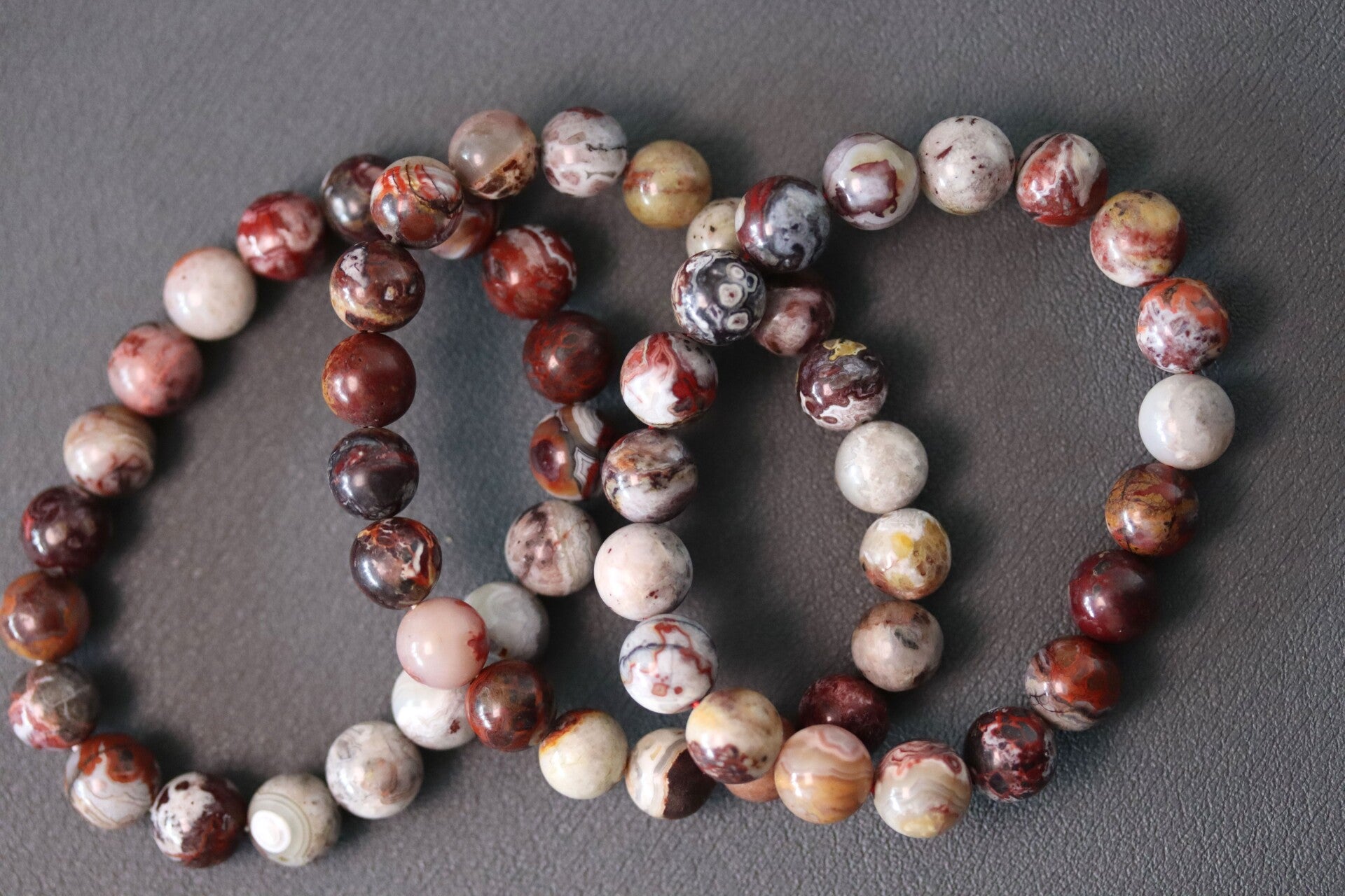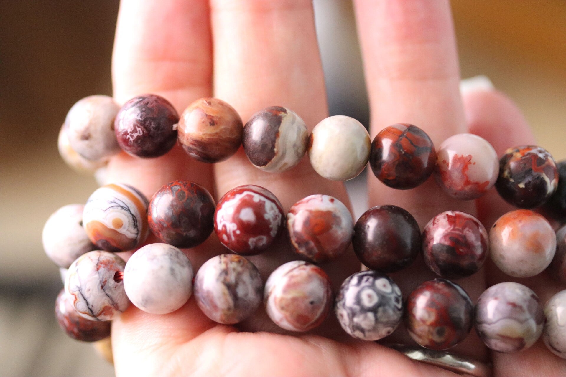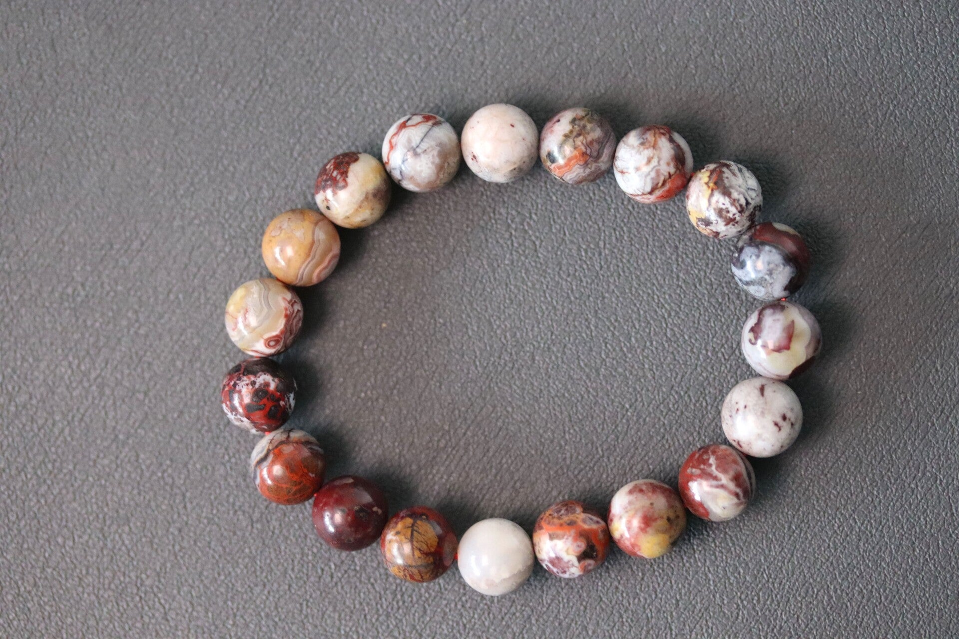 Armband met kralen van hoogwaardige Mexico agaat van 10 mm. Bij aankoop ontvang je één van de drie armbanden die te zien zijn op de foto's.
