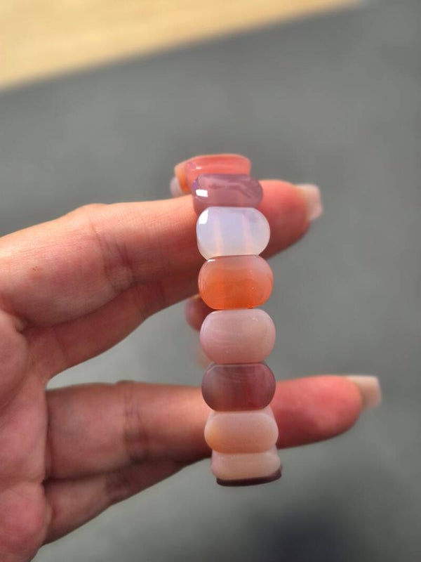 Yanyuan agaat is een prachtige edelsteen afkomstig uit de regio Yanyuan in de Chinese provincie Sichuan. Deze steen staat bekend om zijn levendige, snoepachtige kleuren—zoals rood, oranje, roze, geel en wit—vaak in sierlijke banden of swirlpatronen.