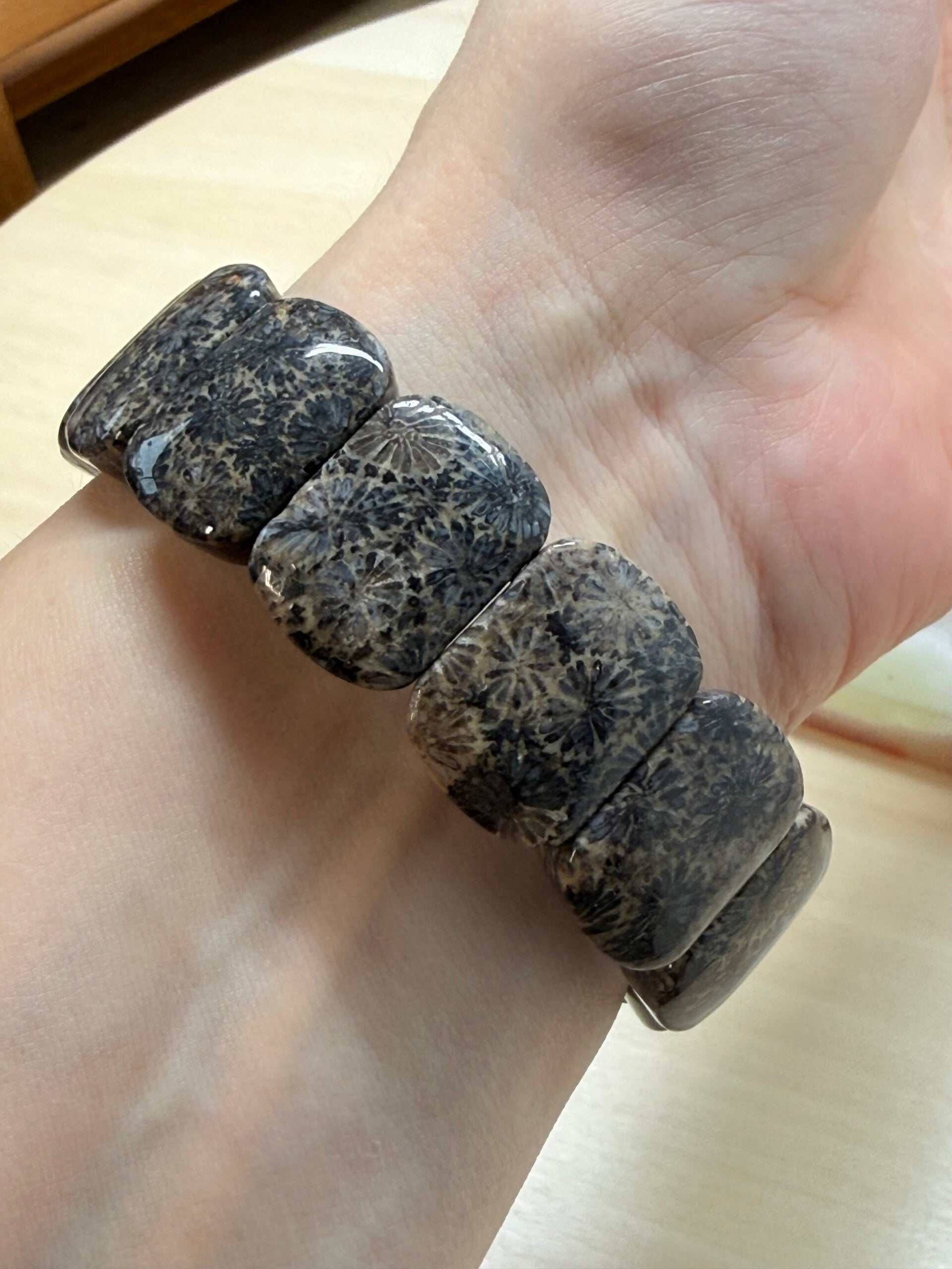 Fossiel koraal of coral jade bestaat uit versteende fossielen van koralen die miljoenen jaren onder vulkanisch as zijn bedolven. De koralen vormen prachtige bloemen die een verschillend uiterlijk hebben, afhankelijk van hun soort en grootte. Ook verschilt de kleur van de diverse koralen doordat zij in inraking zijn gekomen met diverse minerale elementen zoals bijvoorbeeld ijzer.