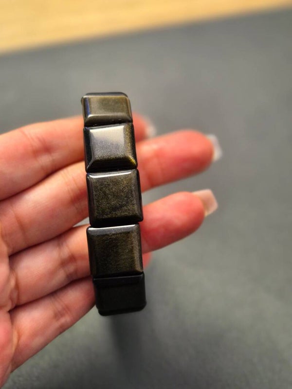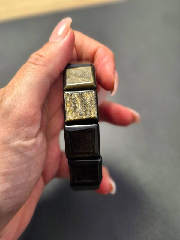 Obsidiaan goud soft bangle vierkant (17 mm)