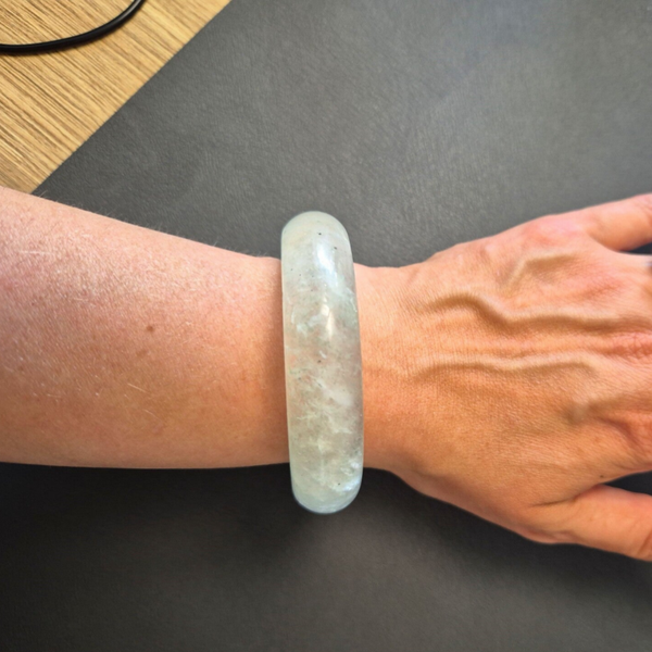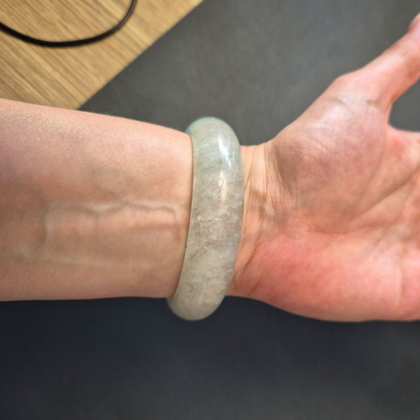 Hard bangle van groene mica in kwarts met diameter van 64.0 mm.