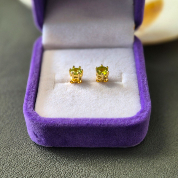 Peridoot Stekers – 5 mm Gefacetteerd in Verguld Zilver
