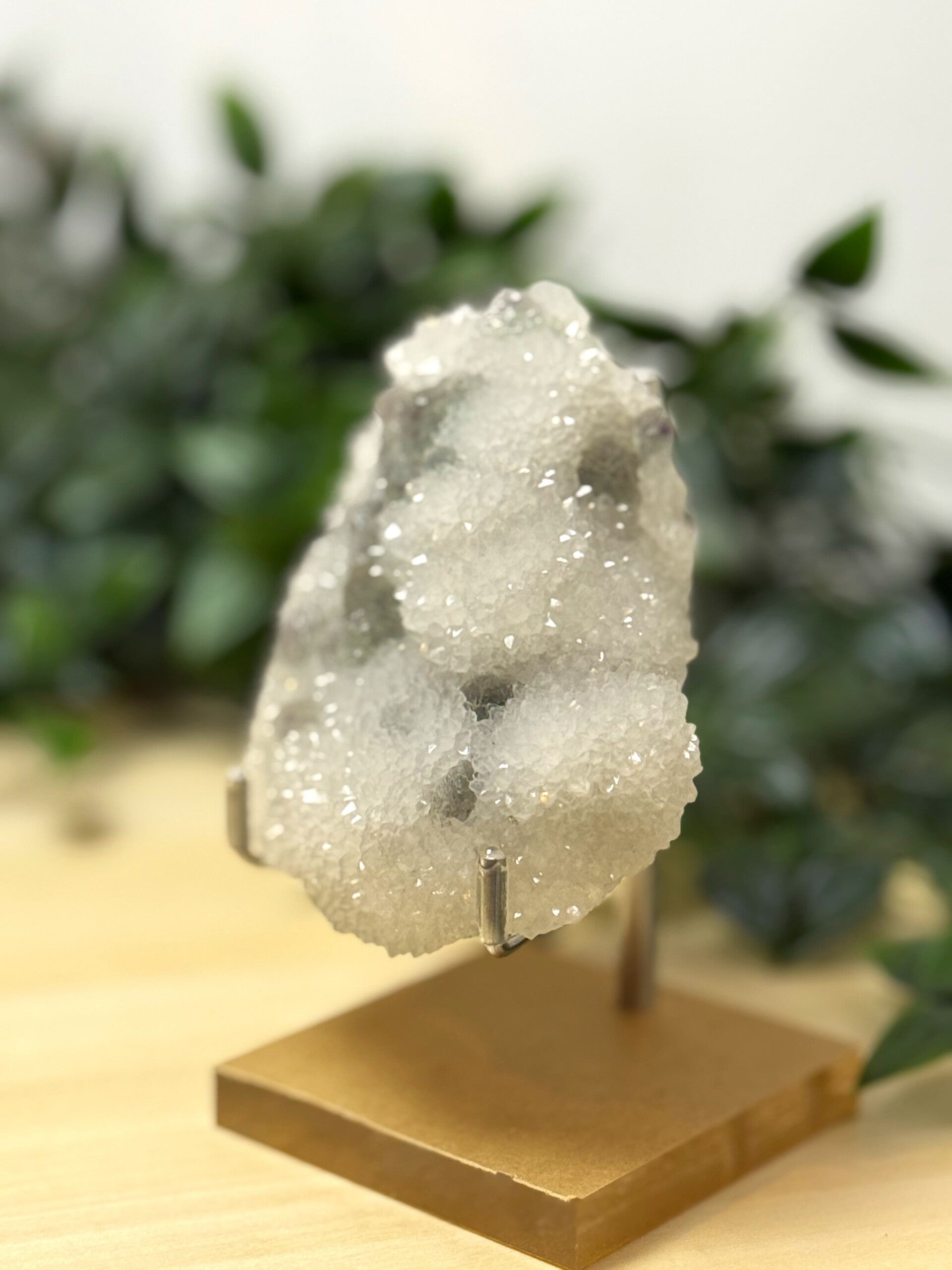 Suiker fluoriet is fluoriet dat in blokjes groeit, bedekt met prachtige druzy quartz. Fluoriet komt in vele kleuren voor, zoals kleurloos, paars, groen, wit, geel, rood, roze en zwart. Fluoriet krijgt zijn kleur door de metalen die erin aanwezig zijn. De naam heeft te maken met de eigenschap van fluorescentie. Onder UV licht gloeien de kleuren van fluoriet levendig op, vooral op plekken waar krasjes zitten. Het mineraal wordt onder andere gevonden in Duitsland, Engeland, China, Argentinië en de Verenigde Staten.