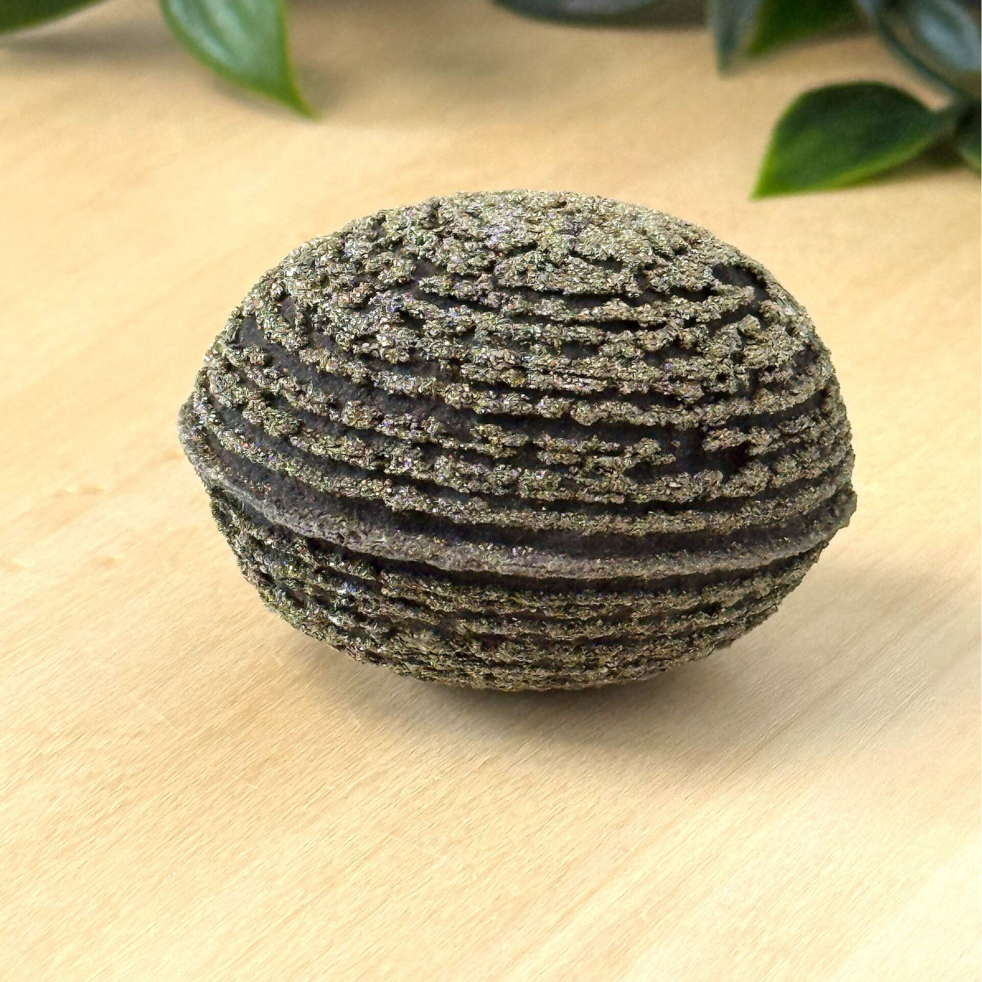 Deze concretie is ontstaan in een omgeving rijk aan koper, zwavel en ijzer. De combinatie van deze elementen in een sedimentaire matrix zoals leisteen maakt de vorming van pyriet mogelijk.