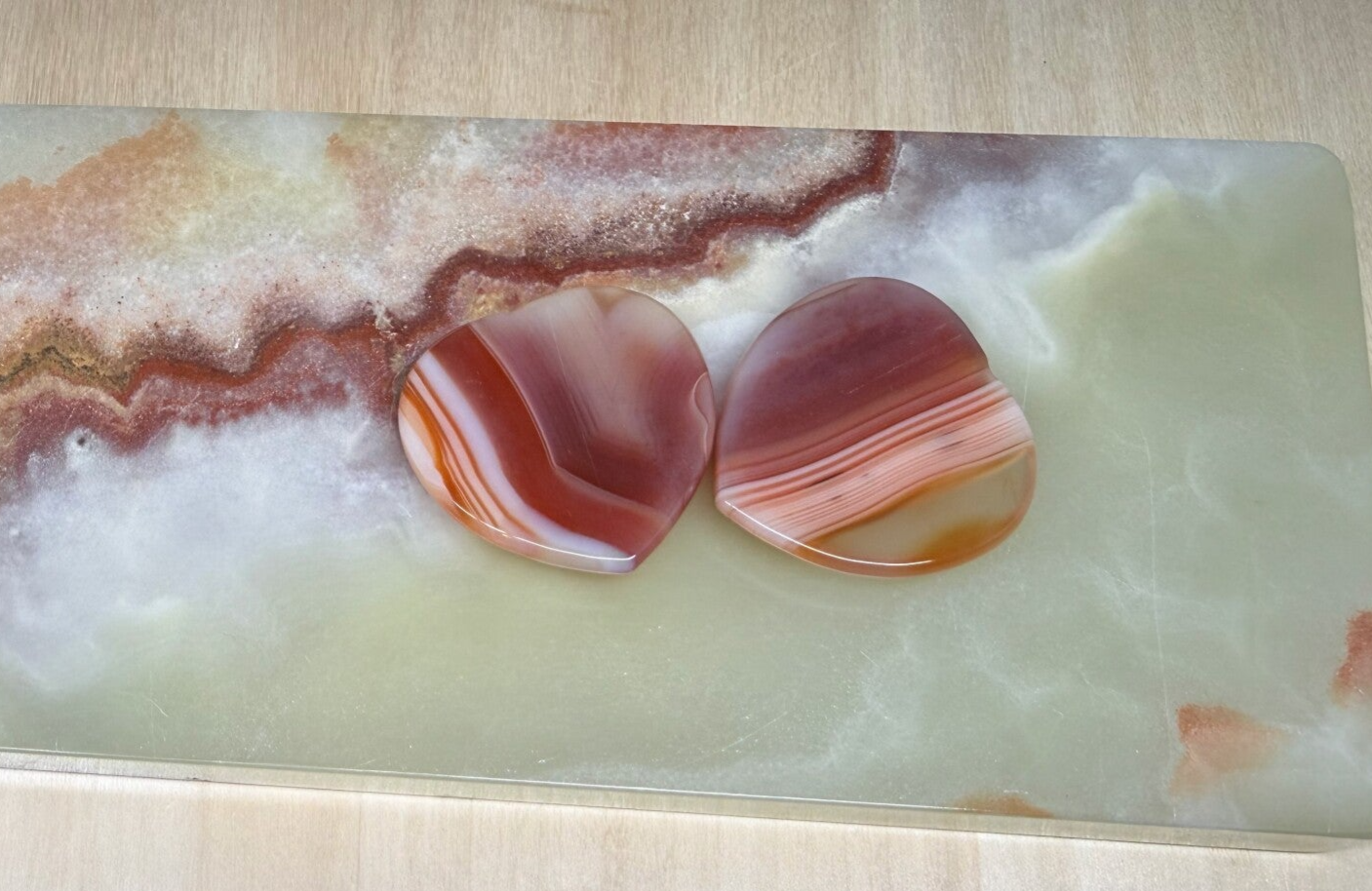 Worry stone van carneool / oranje agaat in hartvorm.