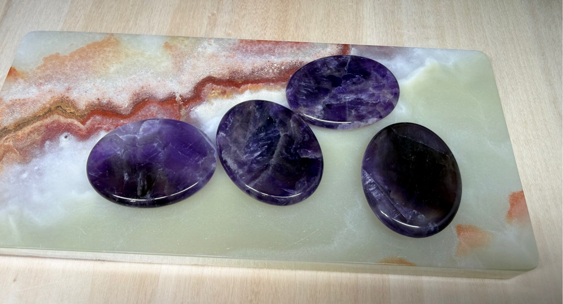 Bij aankoop wordt een van de duimstenen geleverd die te zien zijn op de foto's.