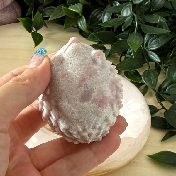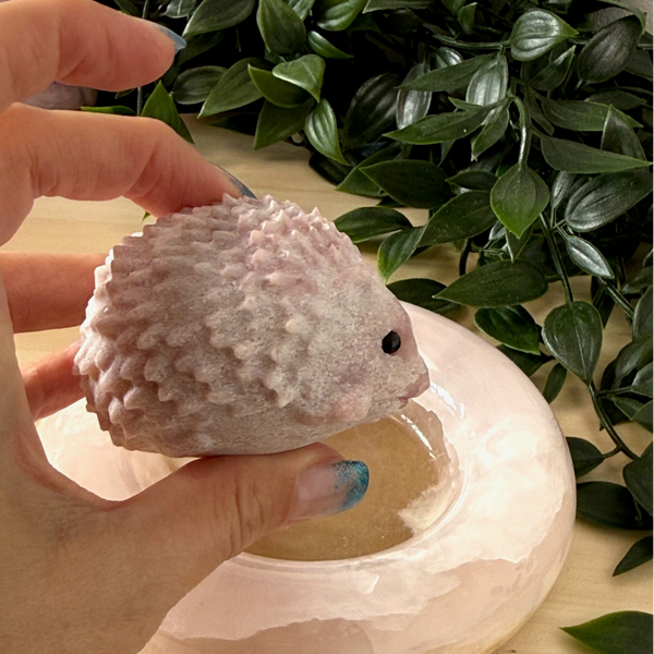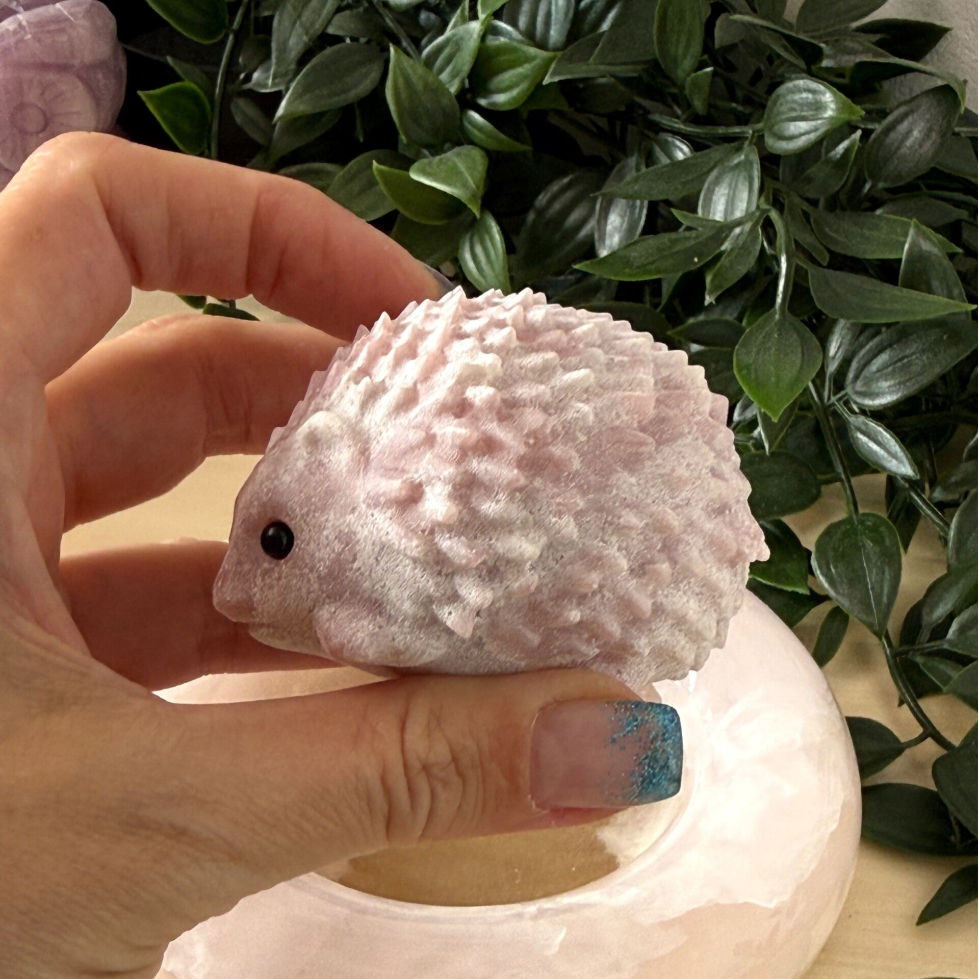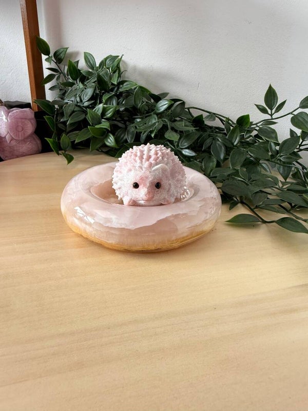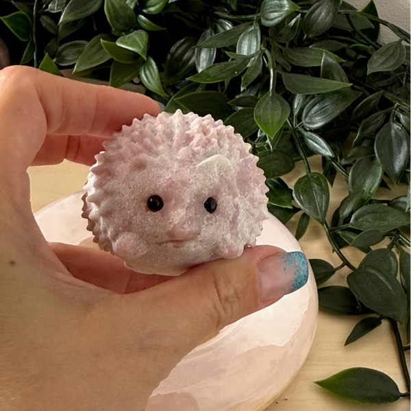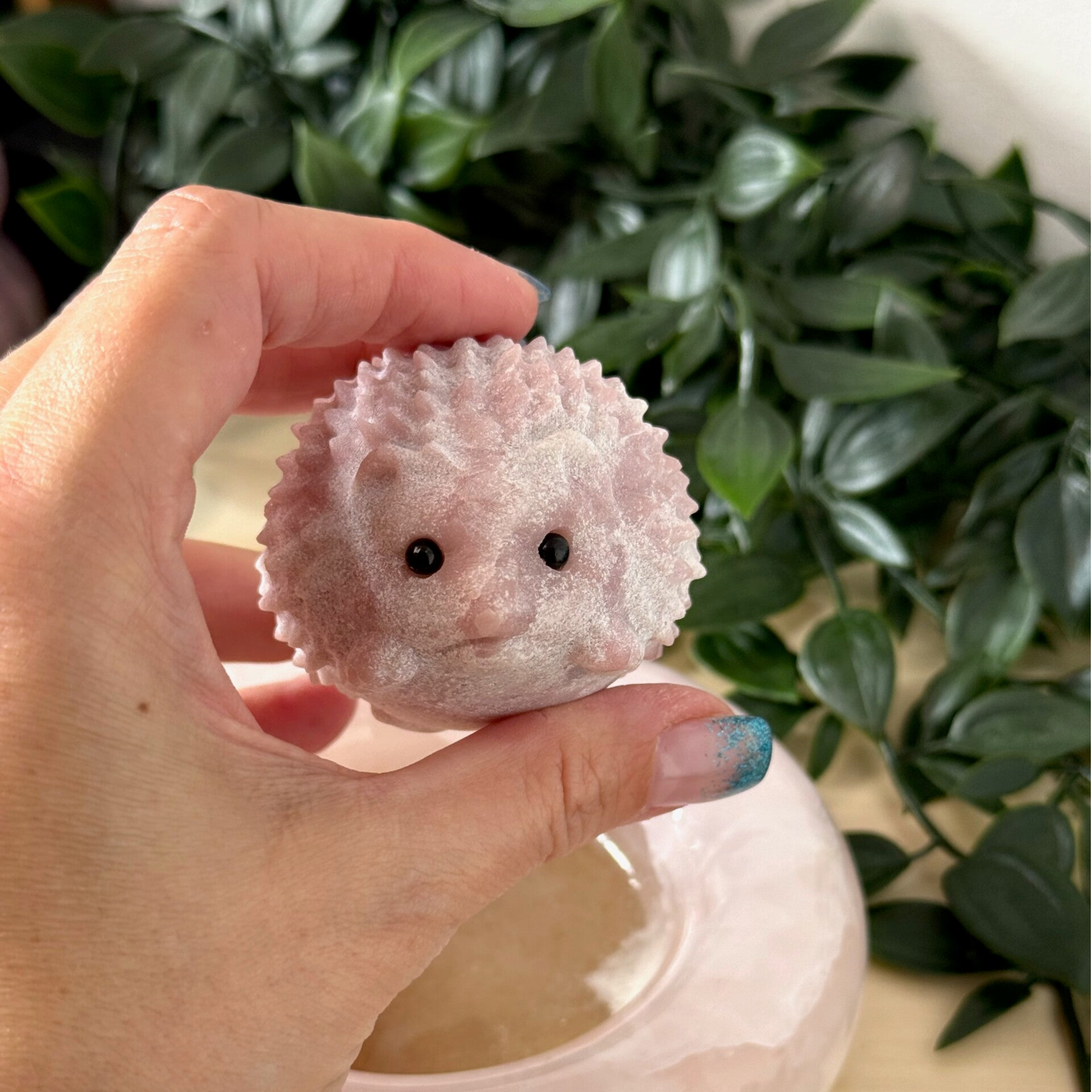 Leuk beeldje van een egel, gemaakt van roze opaal.