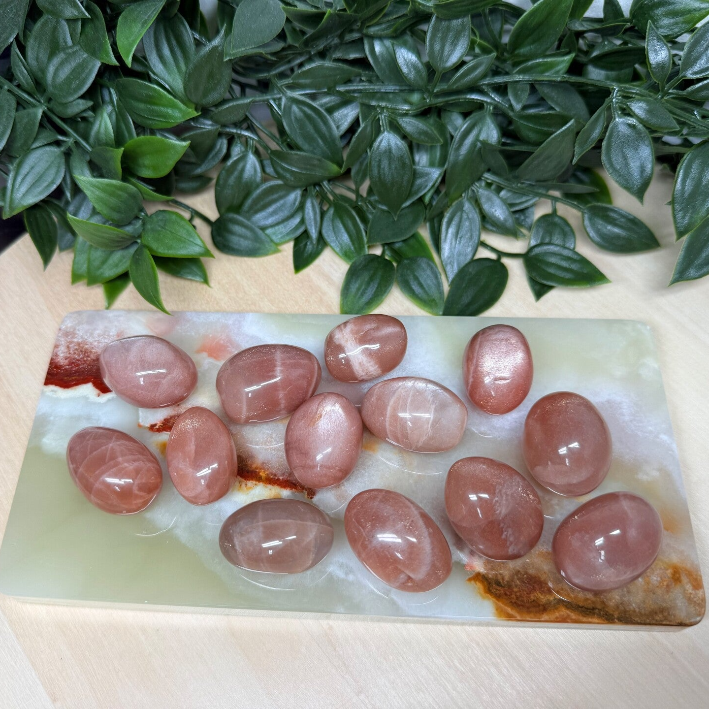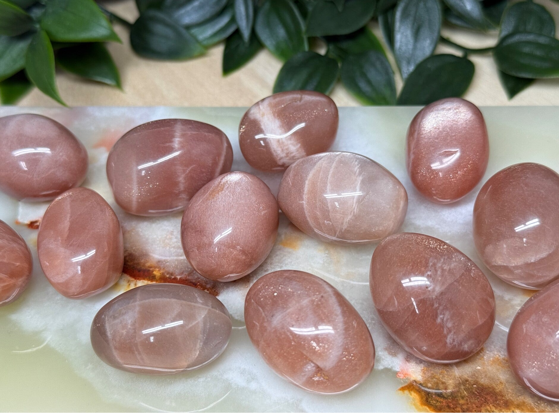 Laat je meevoeren door de zachte energie van deze perzik maansteen trommelstenen, afkomstig uit India. Met hun warme, abrikooskleurige tinten en subtiele parelmoerglans stralen ze een serene schoonheid uit. Elke steen is zorgvuldig gepolijst tot een gladde, afgeronde vorm die prettig aanvoelt in de hand. De karakteristieke glans – ook wel adularescentie genoemd – zorgt voor een mystiek lichtspel dat lijkt te dansen onder het oppervlak. Perzik maansteen wordt gewaardeerd om zijn kalmerende werking en vrouwelijke energie, en is ideaal voor meditatie, healing of als betekenisvol geschenk.