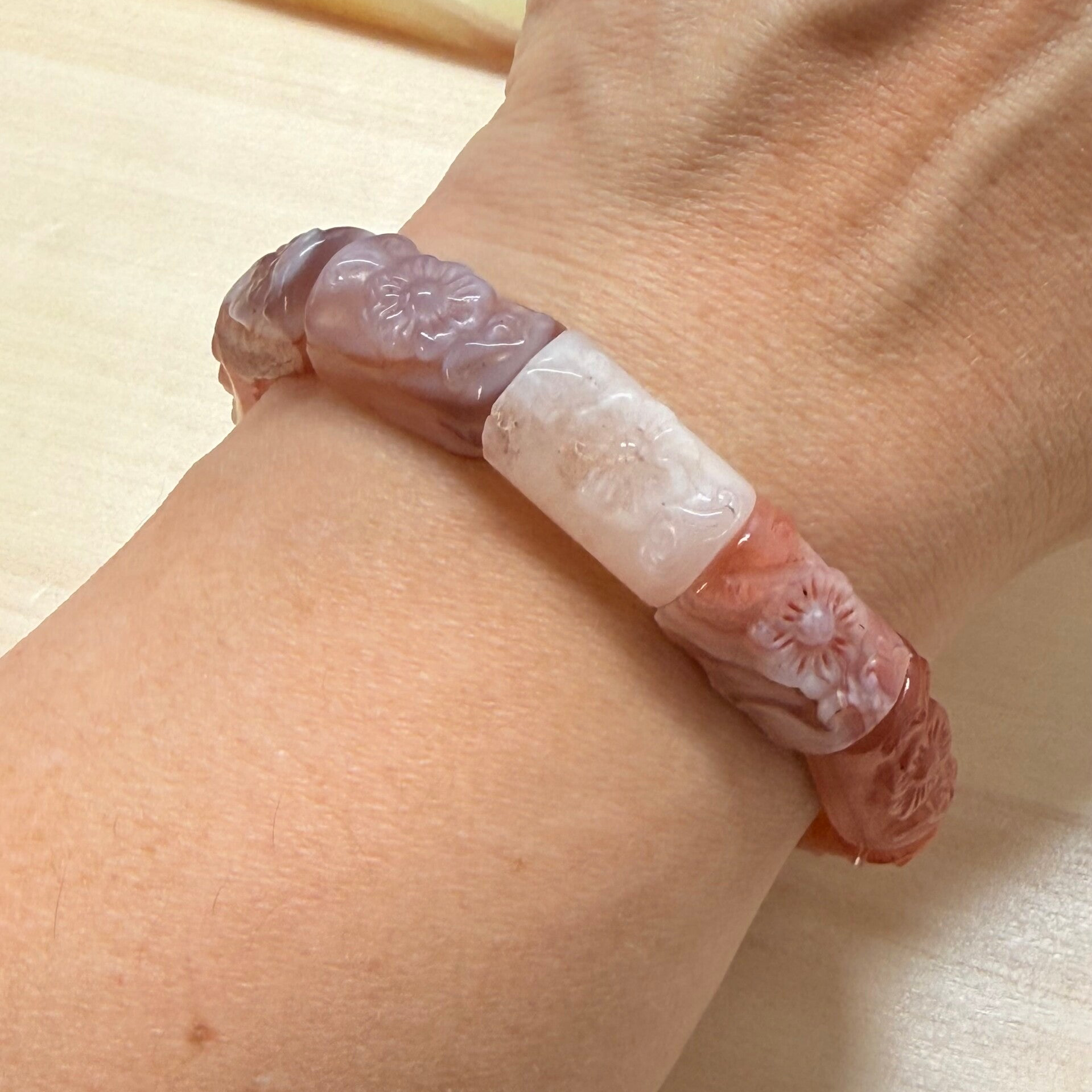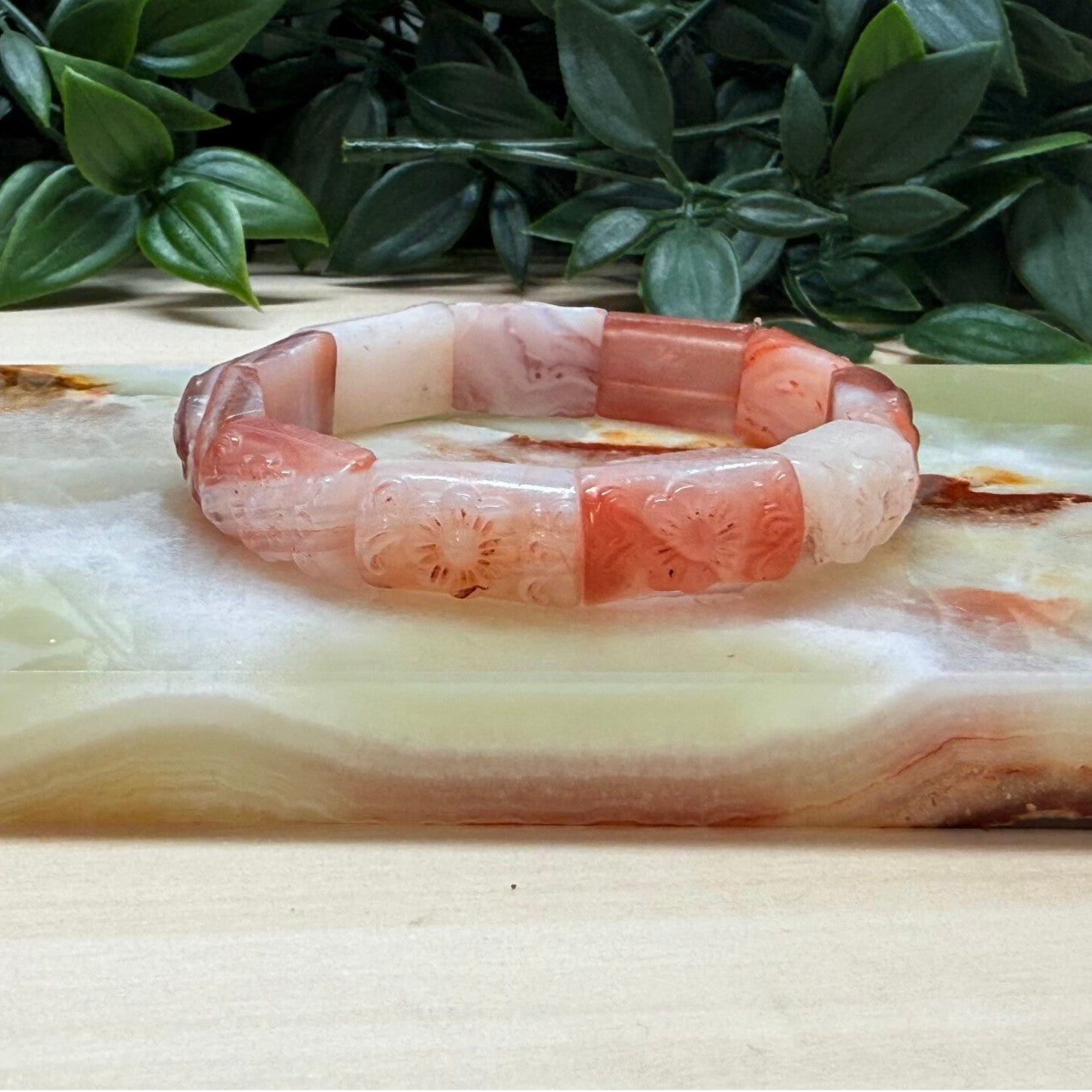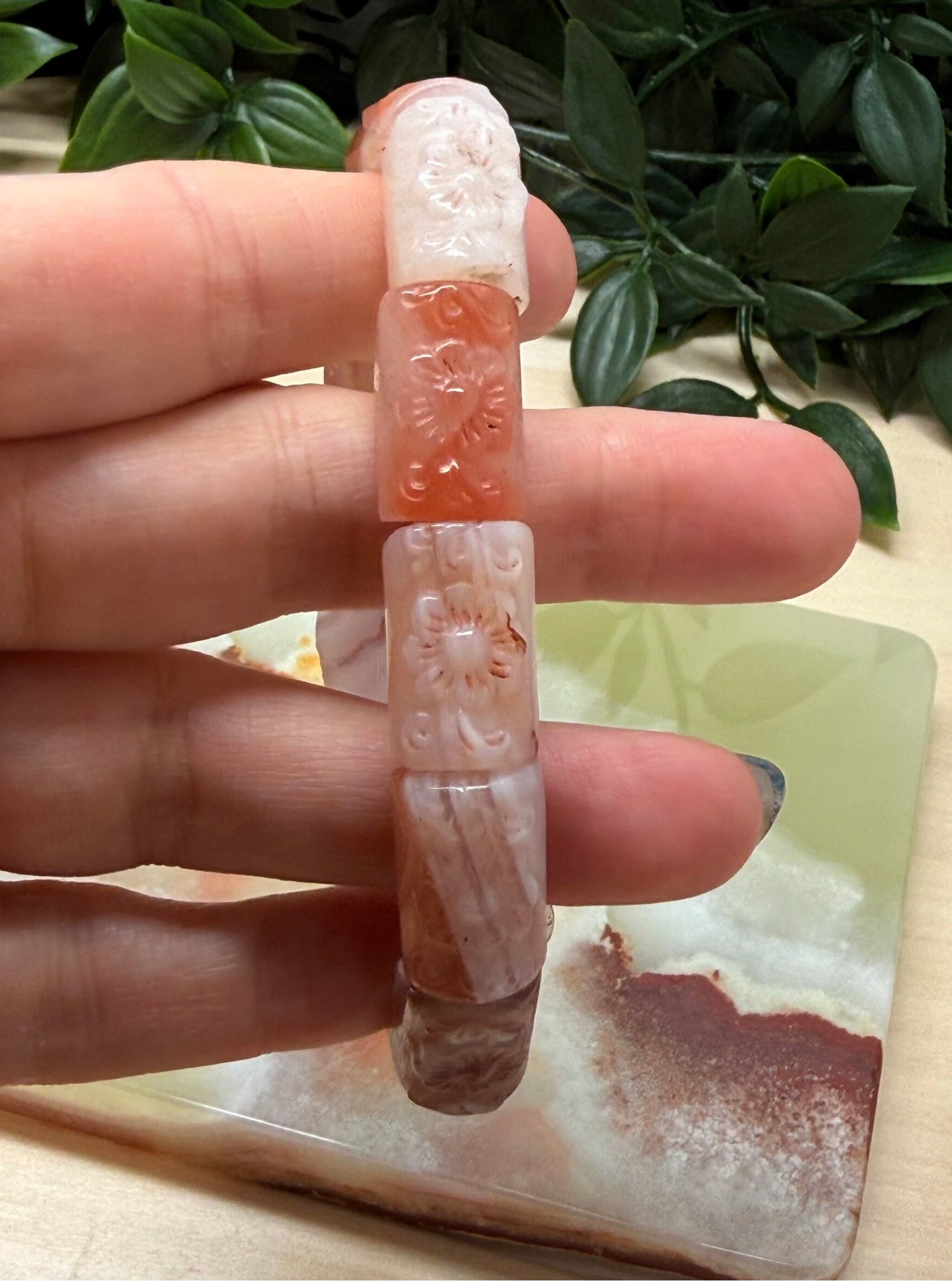 Soft bangle met bloempatroon van Nanhong of South red agaat.
