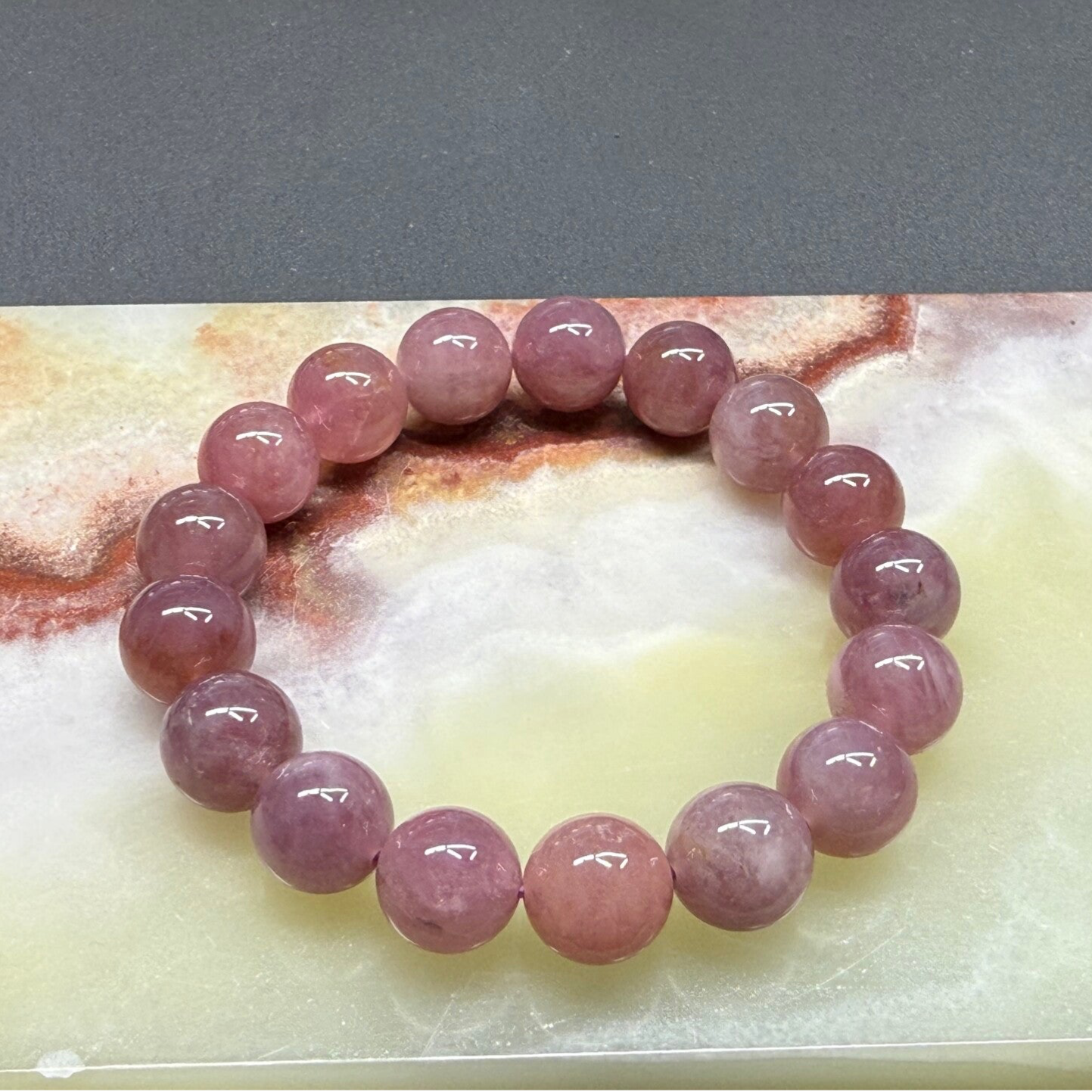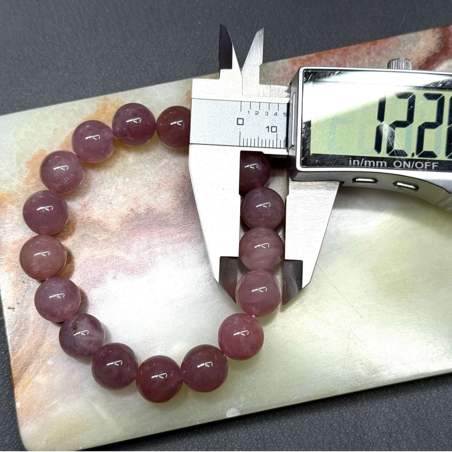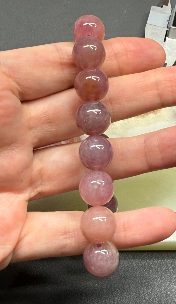 Armband gemaakt met 12 mm kralen van roze amethist.
