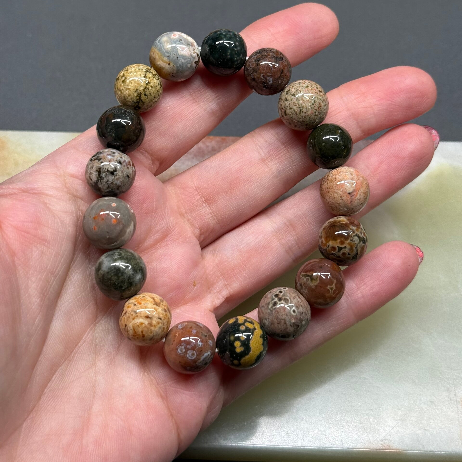 Armband met kralen van oceaan jaspis met grootte van 12 mm