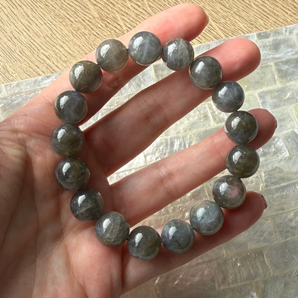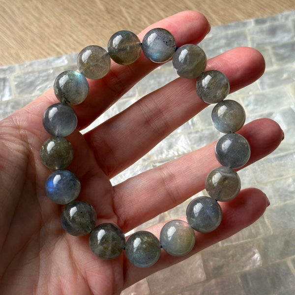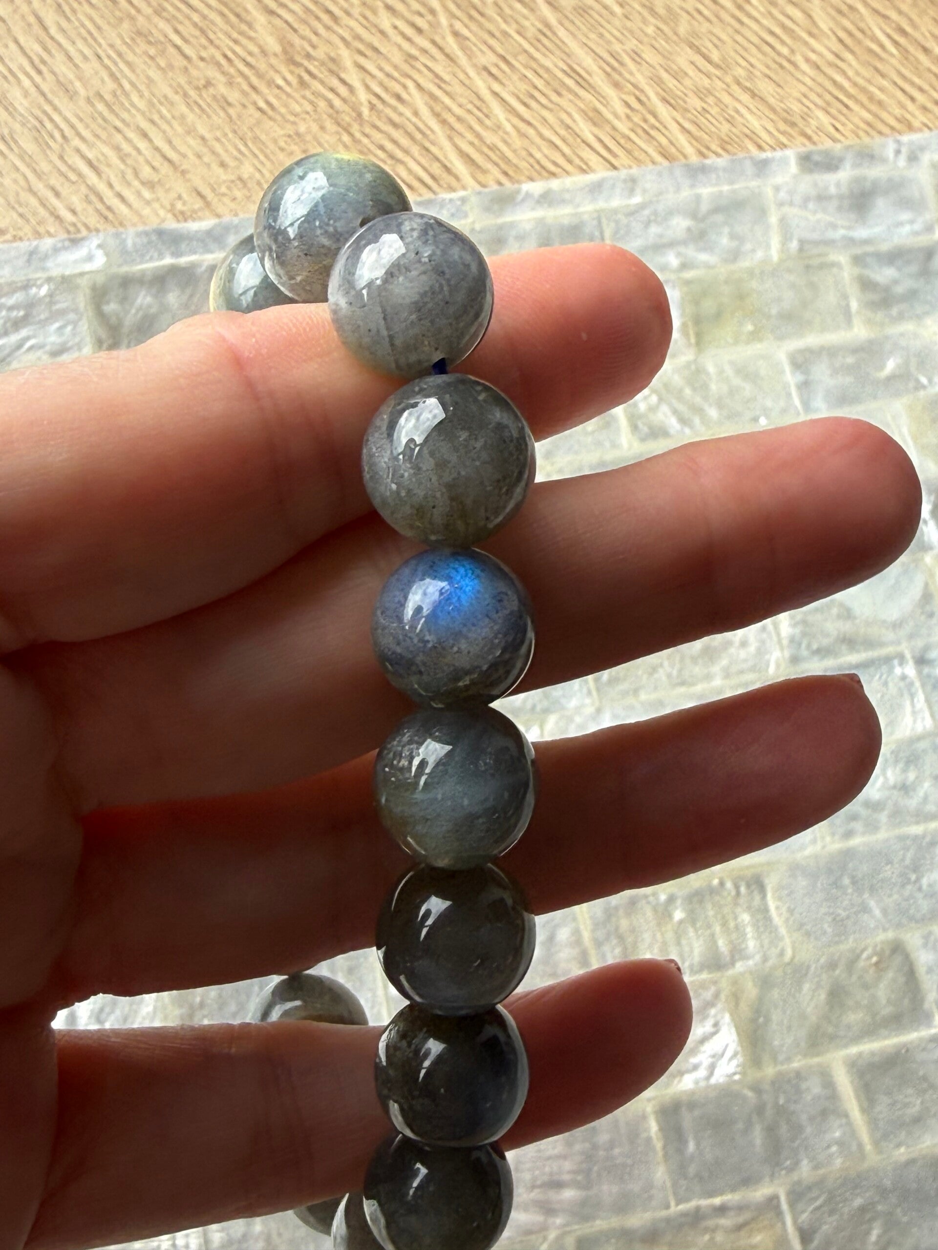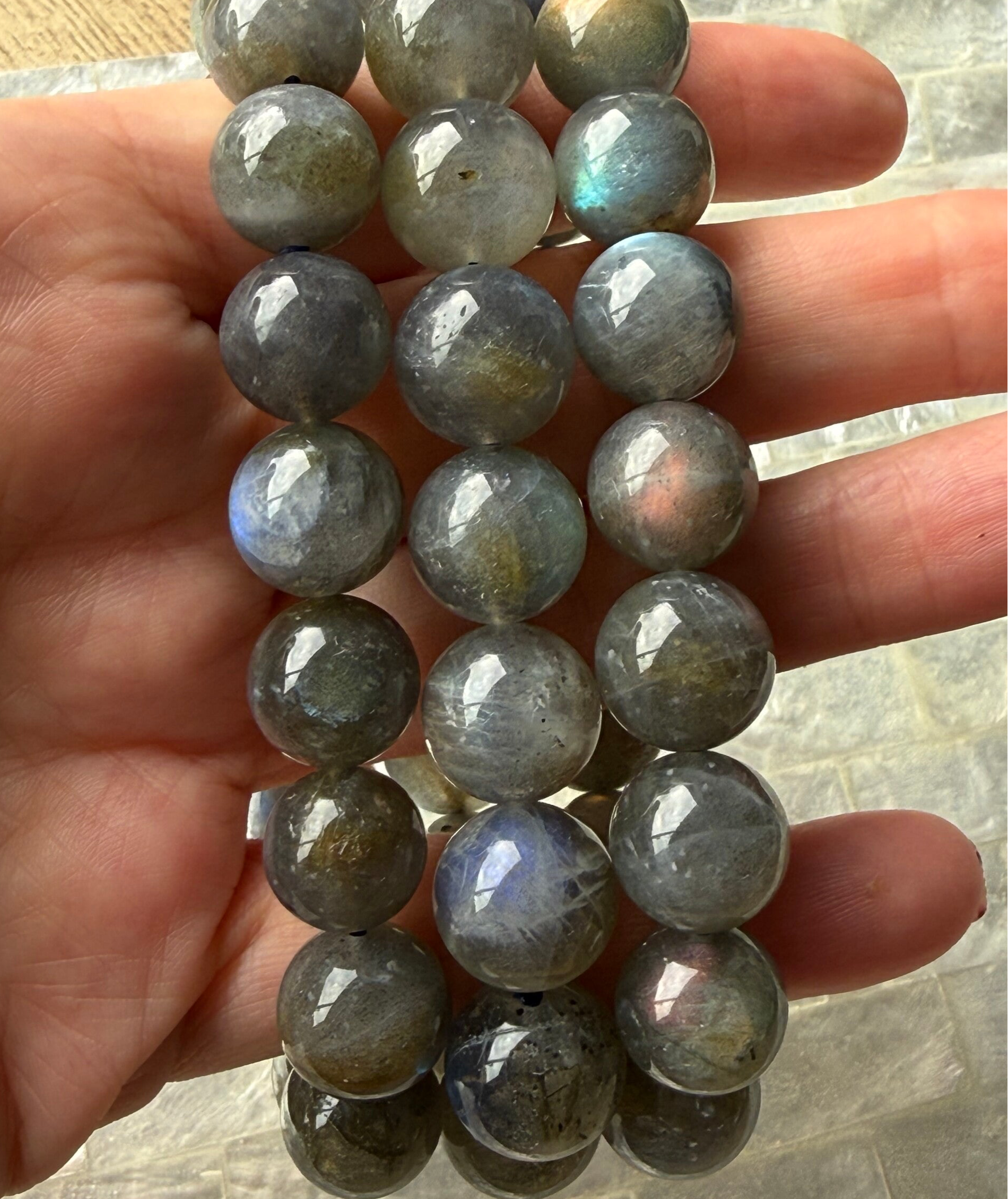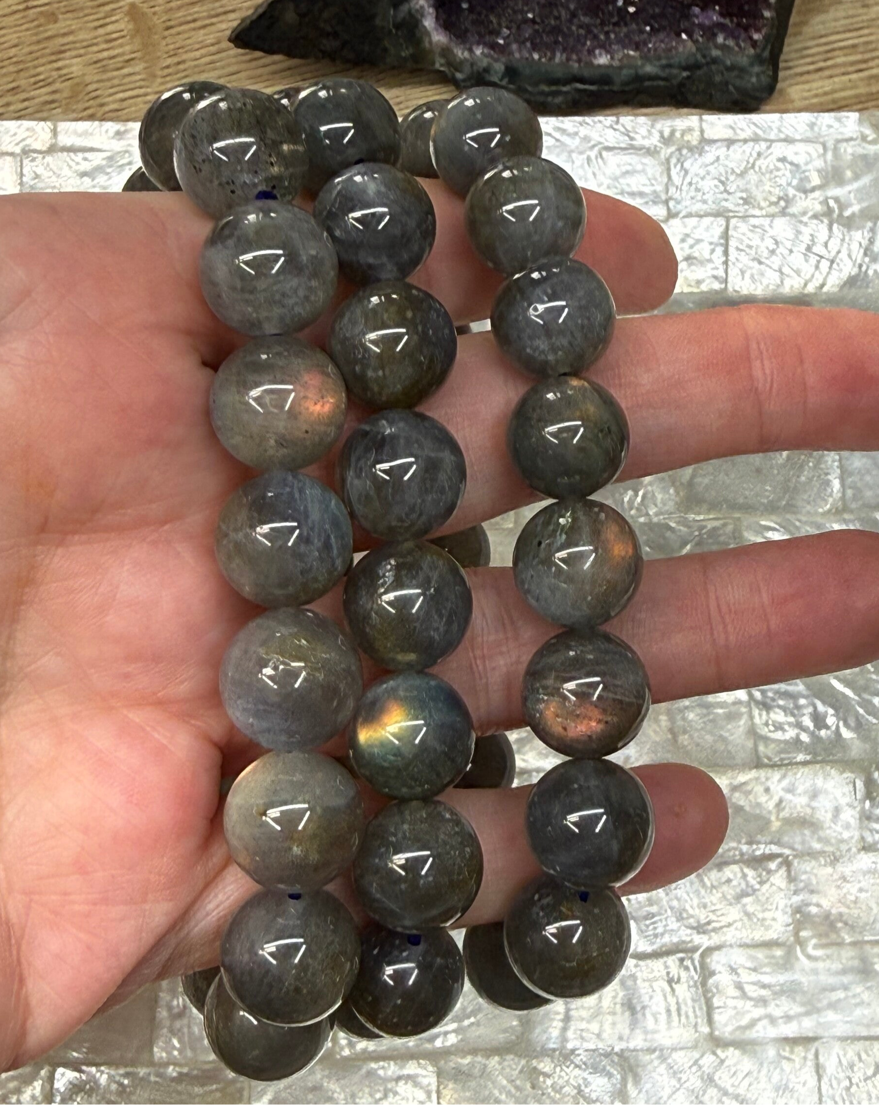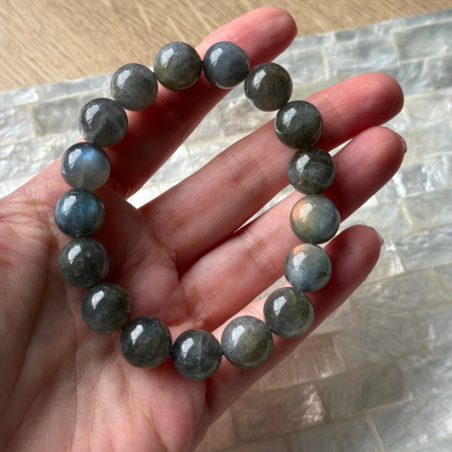 Labradoriet armband van bijna 13 mm in grootte met mooie flash in diverse kleuren.