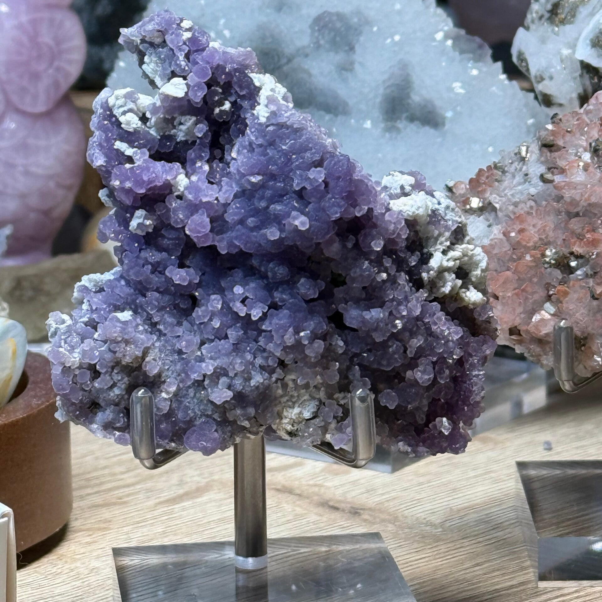 Mooi ruw cluster van Sparkly druifagaat. Inclusief standaard. Uit Sulawesi.