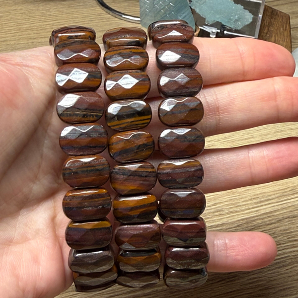 Tijgerijzer is een metamorfe gesteentesoort die ontstaat wanneer lagen tijgeroog, rode jaspis en hematiet onder hoge druk en temperatuur samensmelten tot één massief, gelaagd geheel. Deze combinatie levert de karakteristieke afwisseling van goudbruine glans (tijgeroog), dieprode banden (jaspis) en metaalgrijze tot zwarte lagen (hematiet), waardoor het gesteente een opvallend, bijna dierlijk patroon krijgt. De steen werd historisch voor het eerst bekend uit West-Australië, dat nog steeds een van de belangrijkste vindplaatsen is, maar komt ook voor in onder andere Zuid‑Afrika, India, Brazilië, Mexico en Australië.