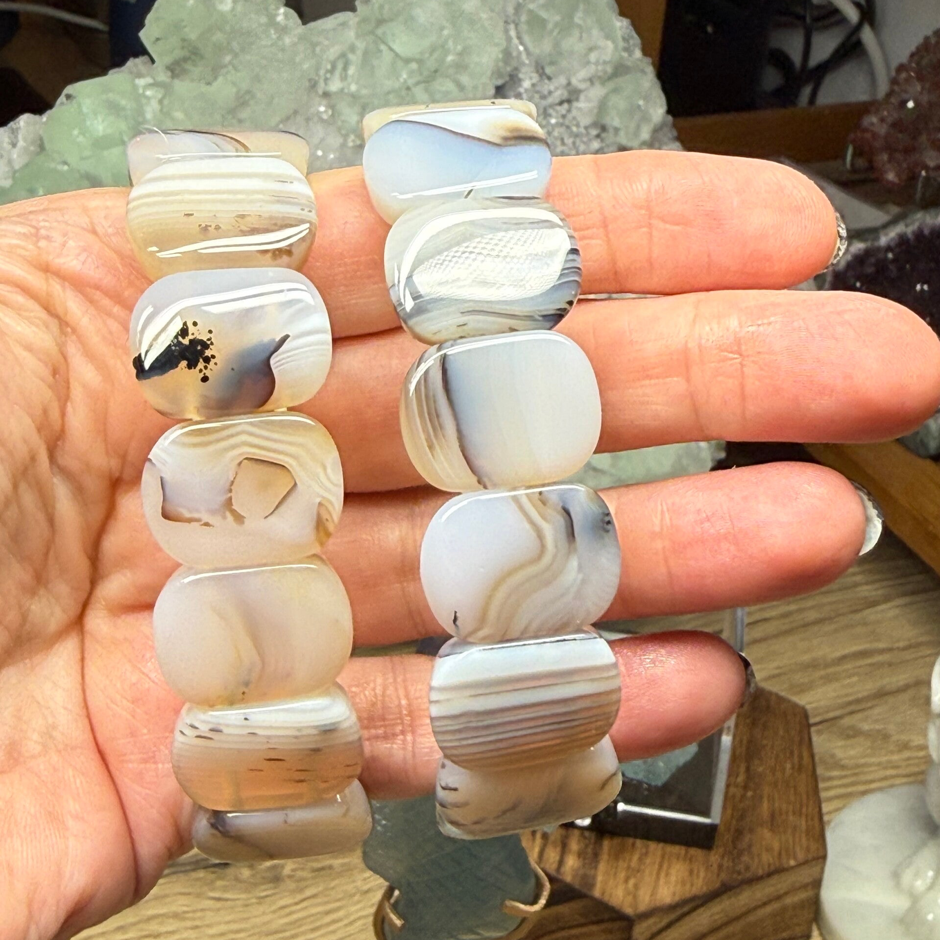 Dendritisch agaat ontstaat wanneer chalcedoon (microkristallijn kwarts) tijdens zijn groei wordt doordrongen door mangaan- of ijzeroxide‑afzettingen die zich in fijne scheurtjes en holtes nestelen. Deze mineralen vormen de kenmerkende vertakkende, boom- of varenvormige patronen die de steen zijn naam geven. Grote en bekende vindplaatsen liggen in Brazilië, India en de Verenigde Staten, waar de juiste combinatie van silica‑rijke oplossingen, langzame afkoeling en minerale insluitsels samenkomt om deze natuurlijke “landschappen” in steen te creëren.