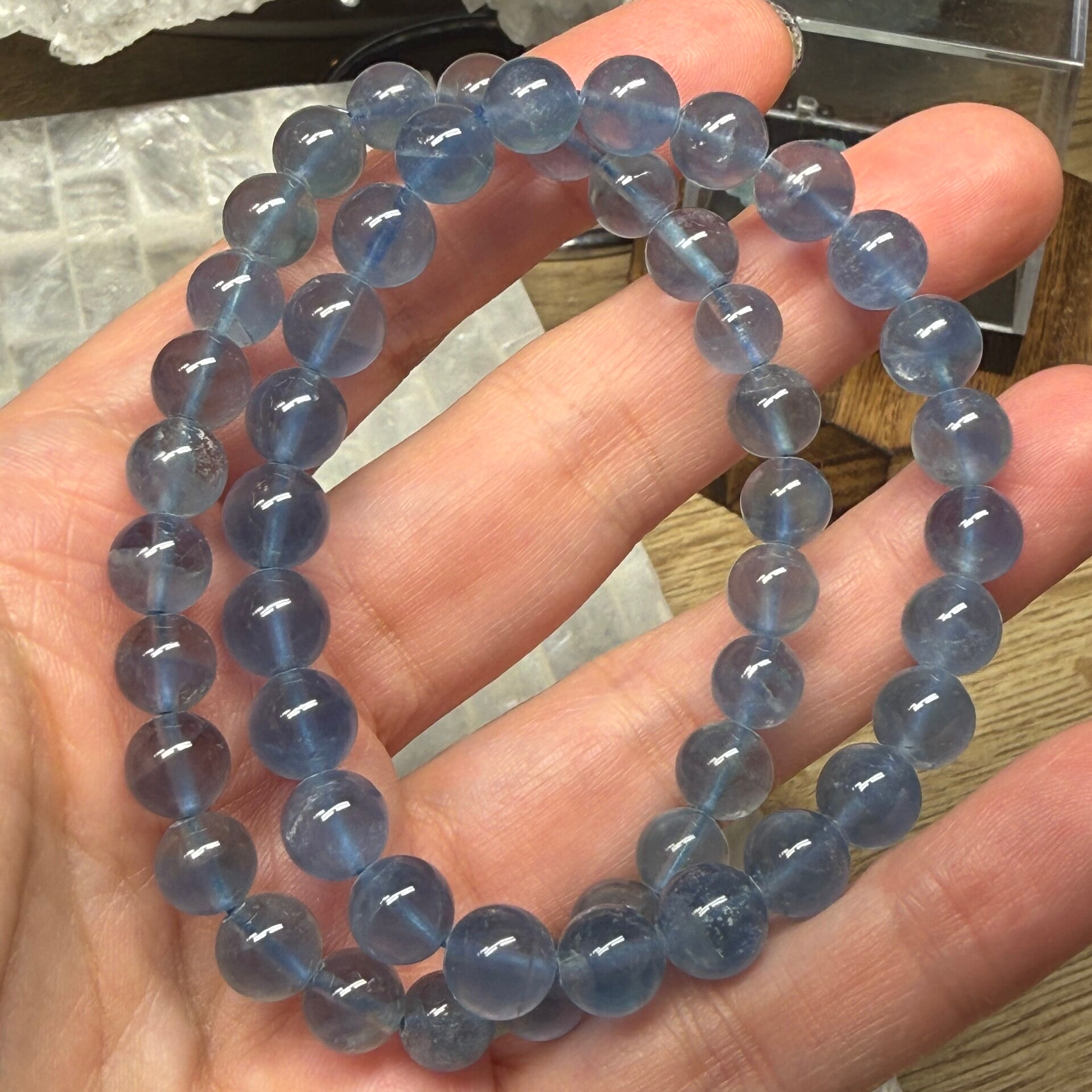 Blauwe fluoriet armband 7 mm