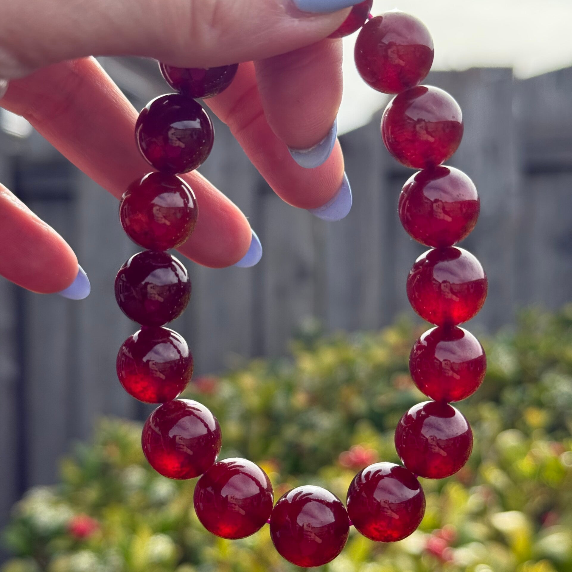 Mooie kwaliteit armband van granaat. Oranje rood in kleur.