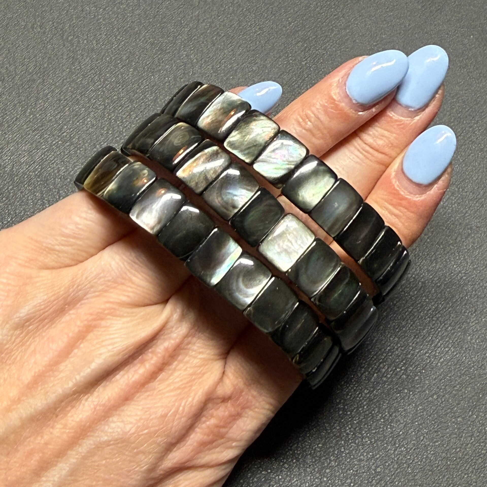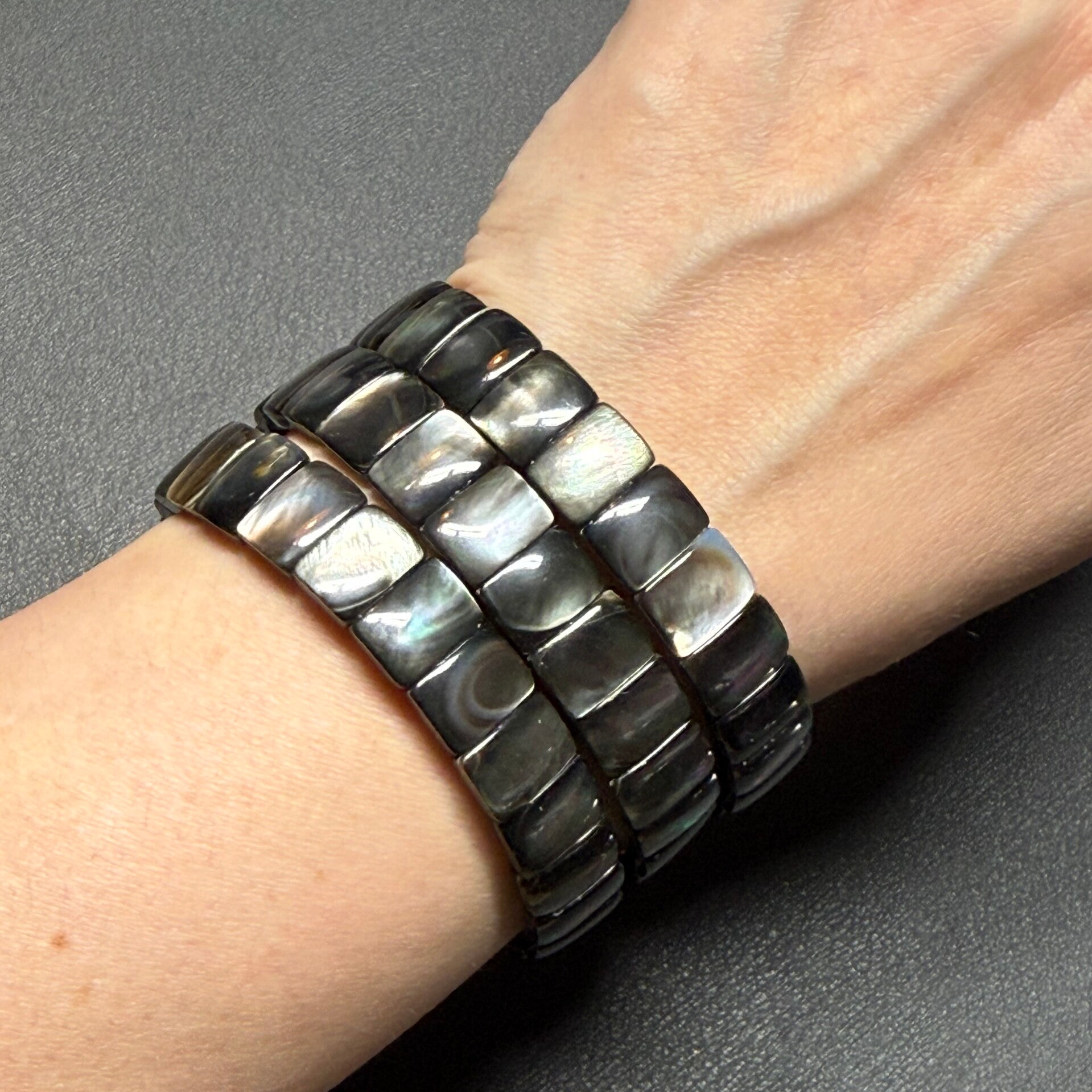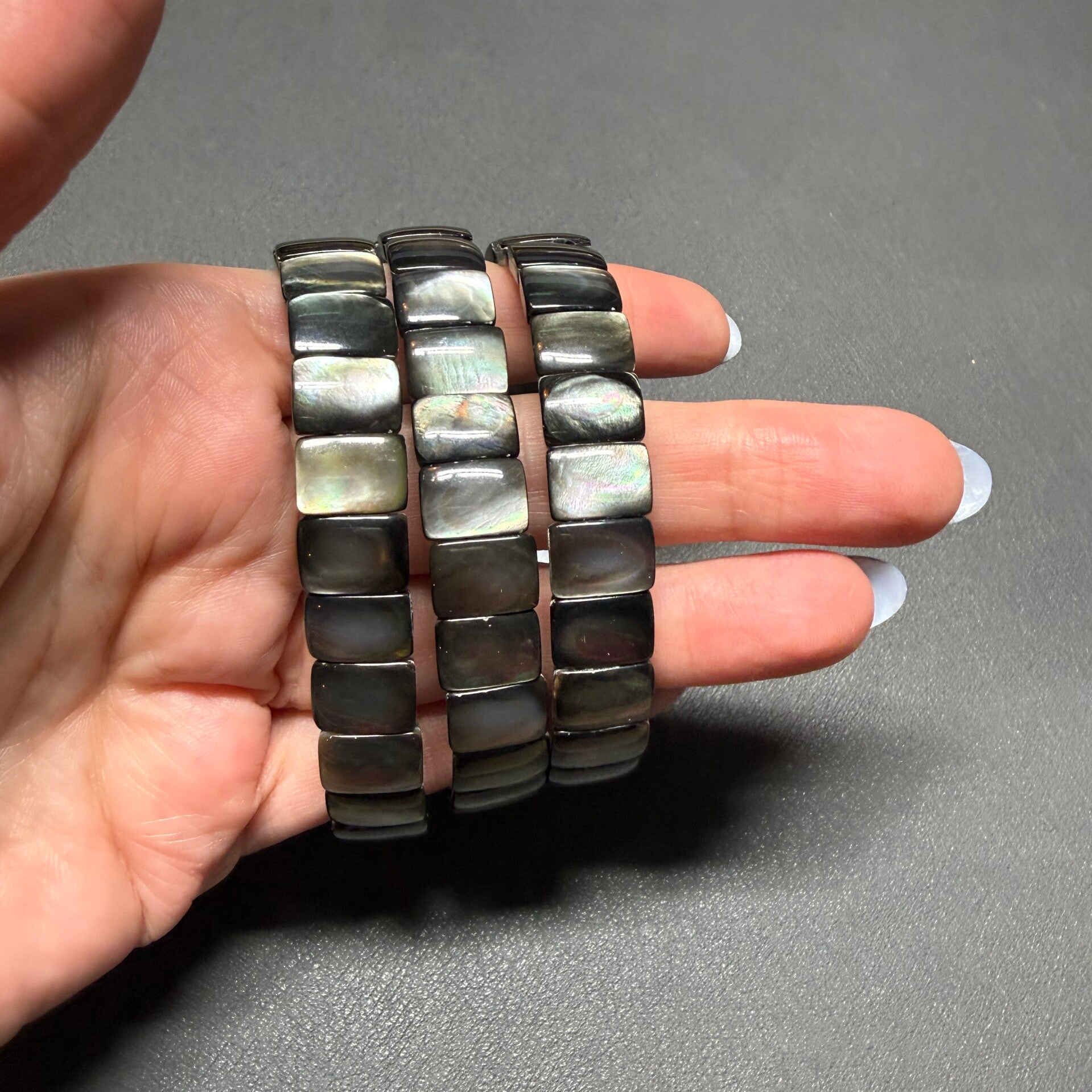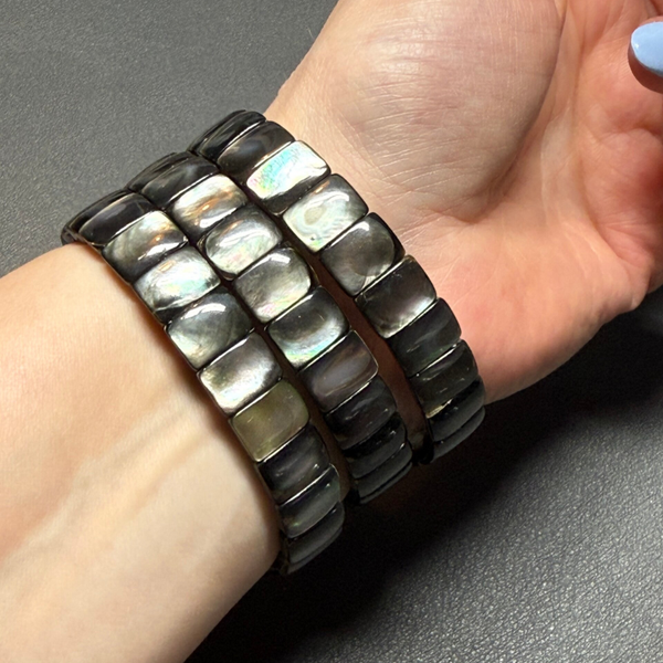 Zwarte schelp met parelmoer, vaak afkomstig van de Pinctada margaritifera (de zwartlipparelmoester), vindt zijn herkomst hoofdzakelijk in de warme, mineraalrijke wateren van de Stille Oceaan, met Frans-Polynesië en de Cookeilanden als belangrijkste regio's. Dit parelmoer ontstaat door de afscheiding van dunne laagjes aragoniet en conchioline, die door de oester worden afgezet tegen de binnenkant van de schelp als bescherming tegen indringers. De karakteristieke donkere, iriserende glans – variërend van pauwgroen en antraciet tot diepzwart – is het resultaat van specifieke pigmenten en de unieke manier waarop licht tussen de microscopische kristalstructuren wordt gebroken.